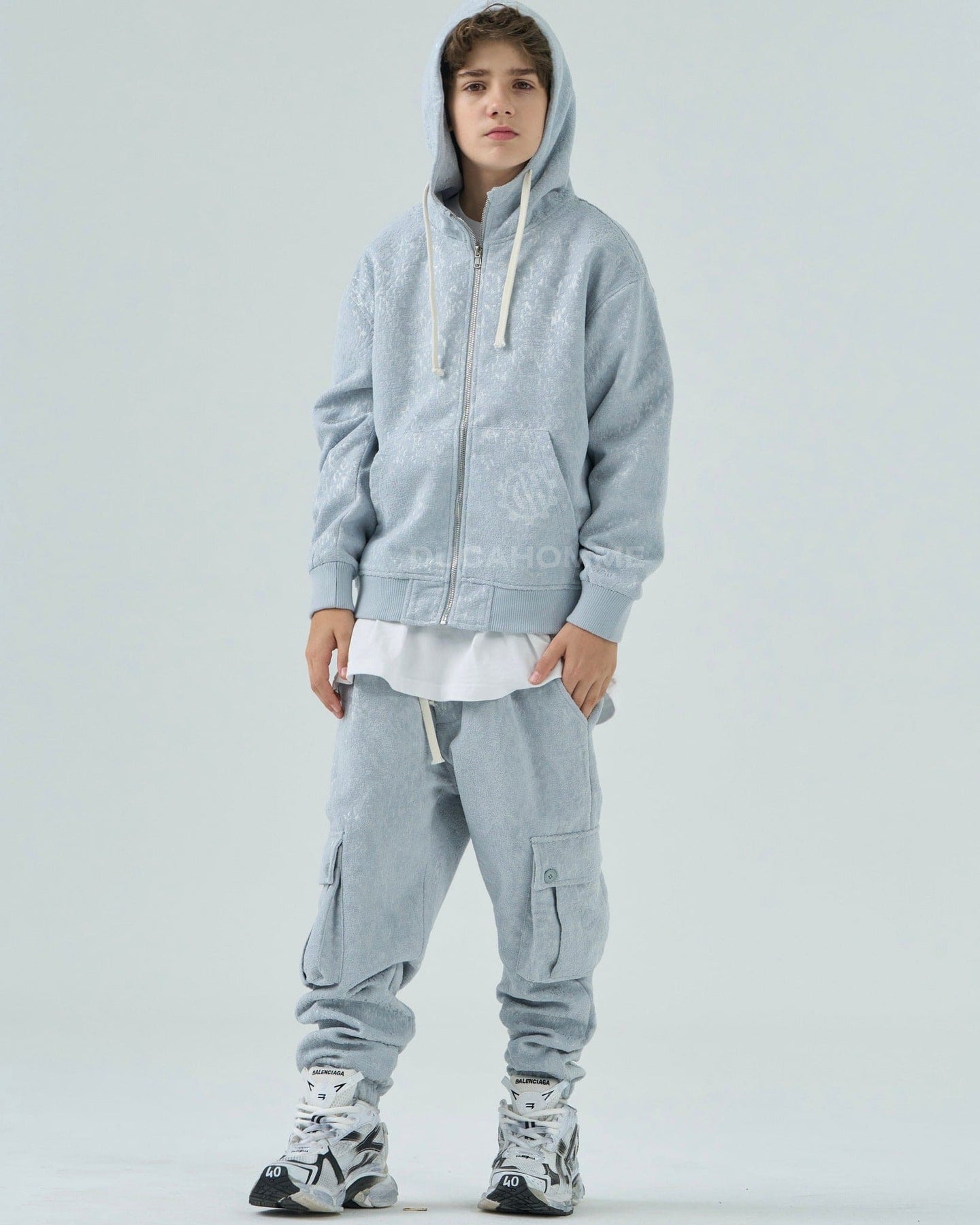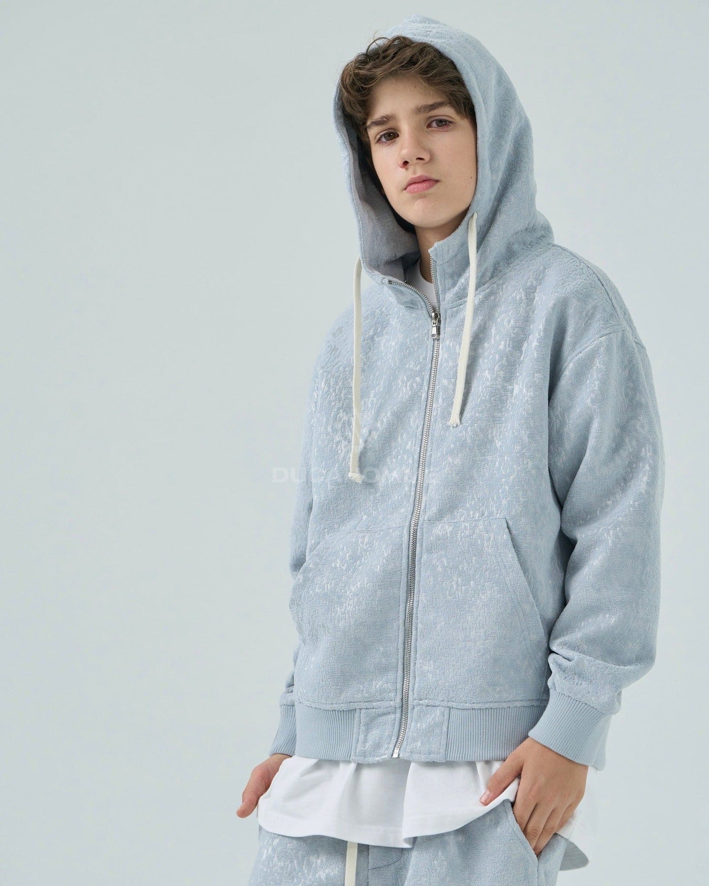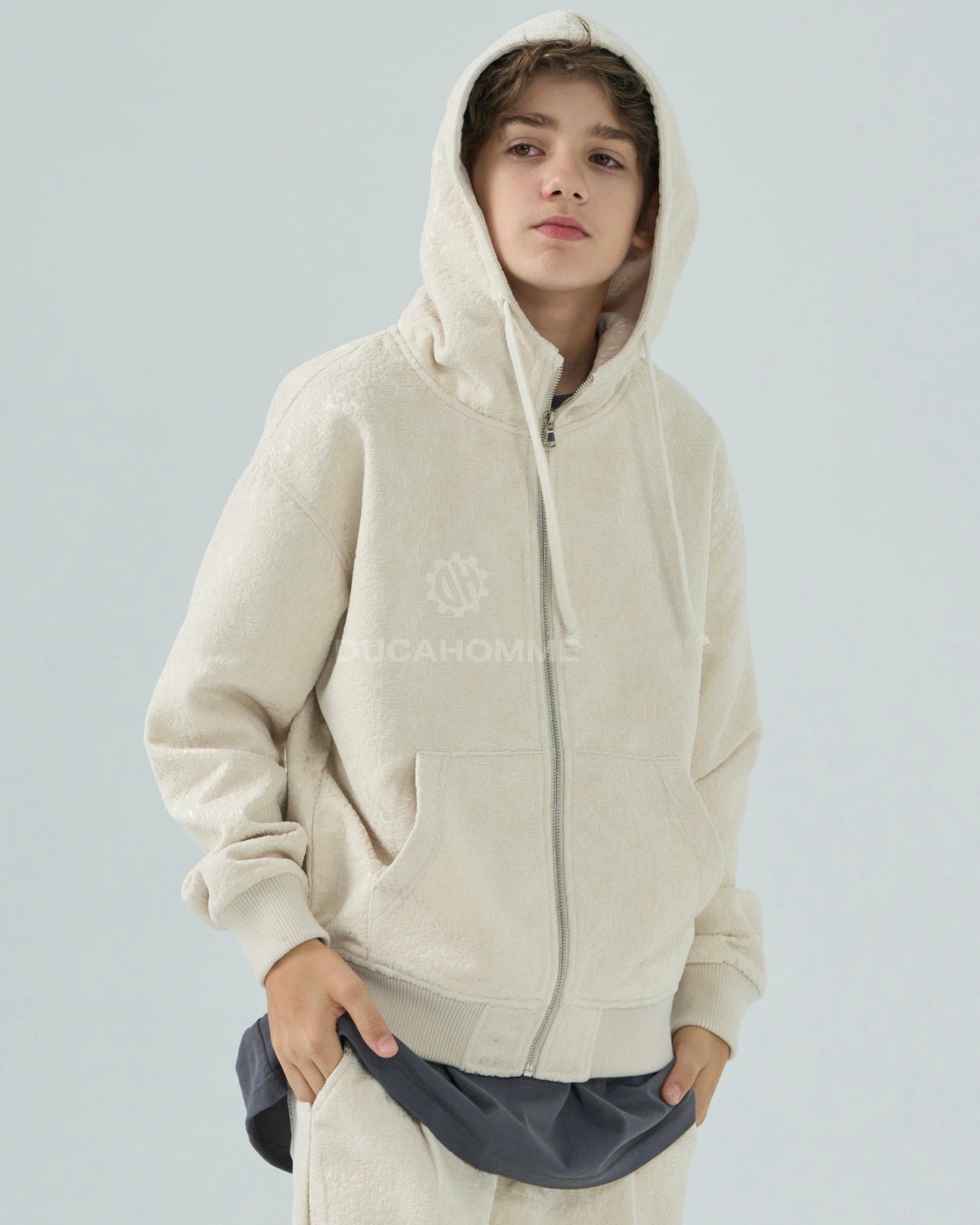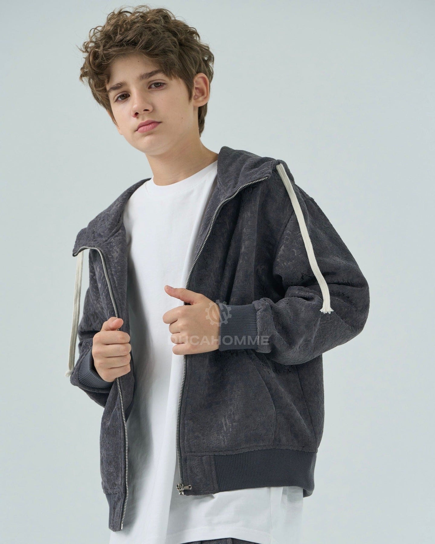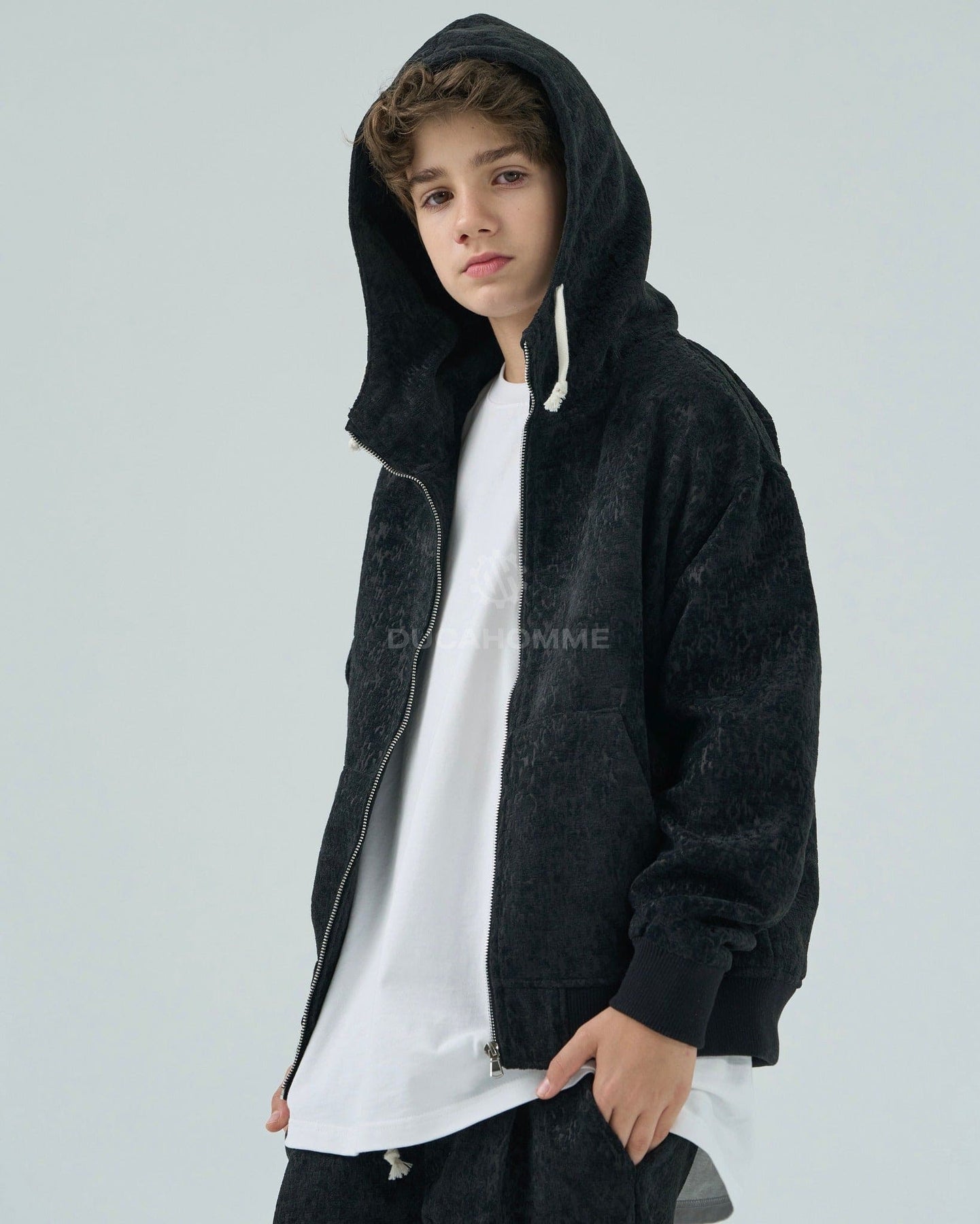 felpa con zip e cappuccio in velluto lavorato (duca homme)