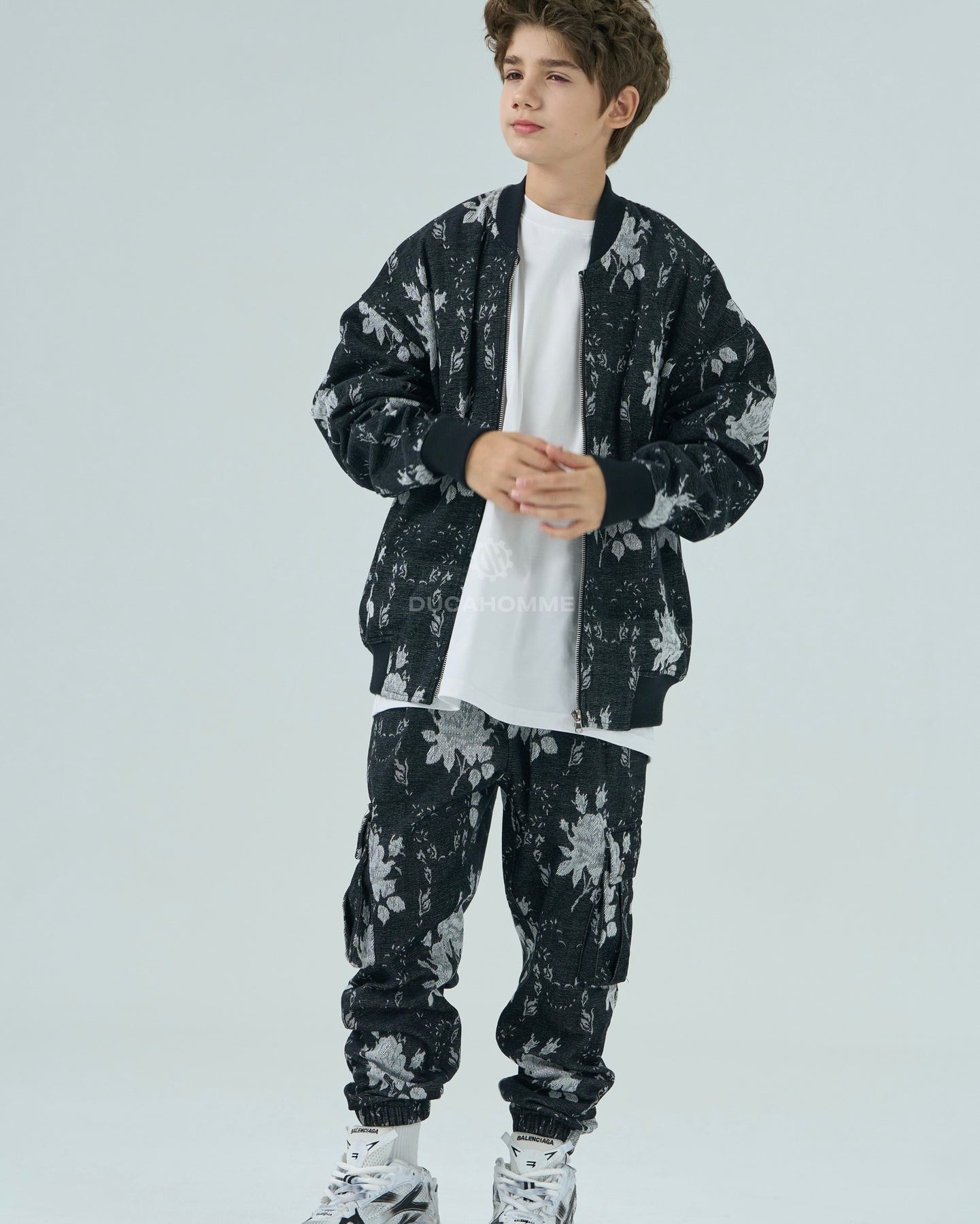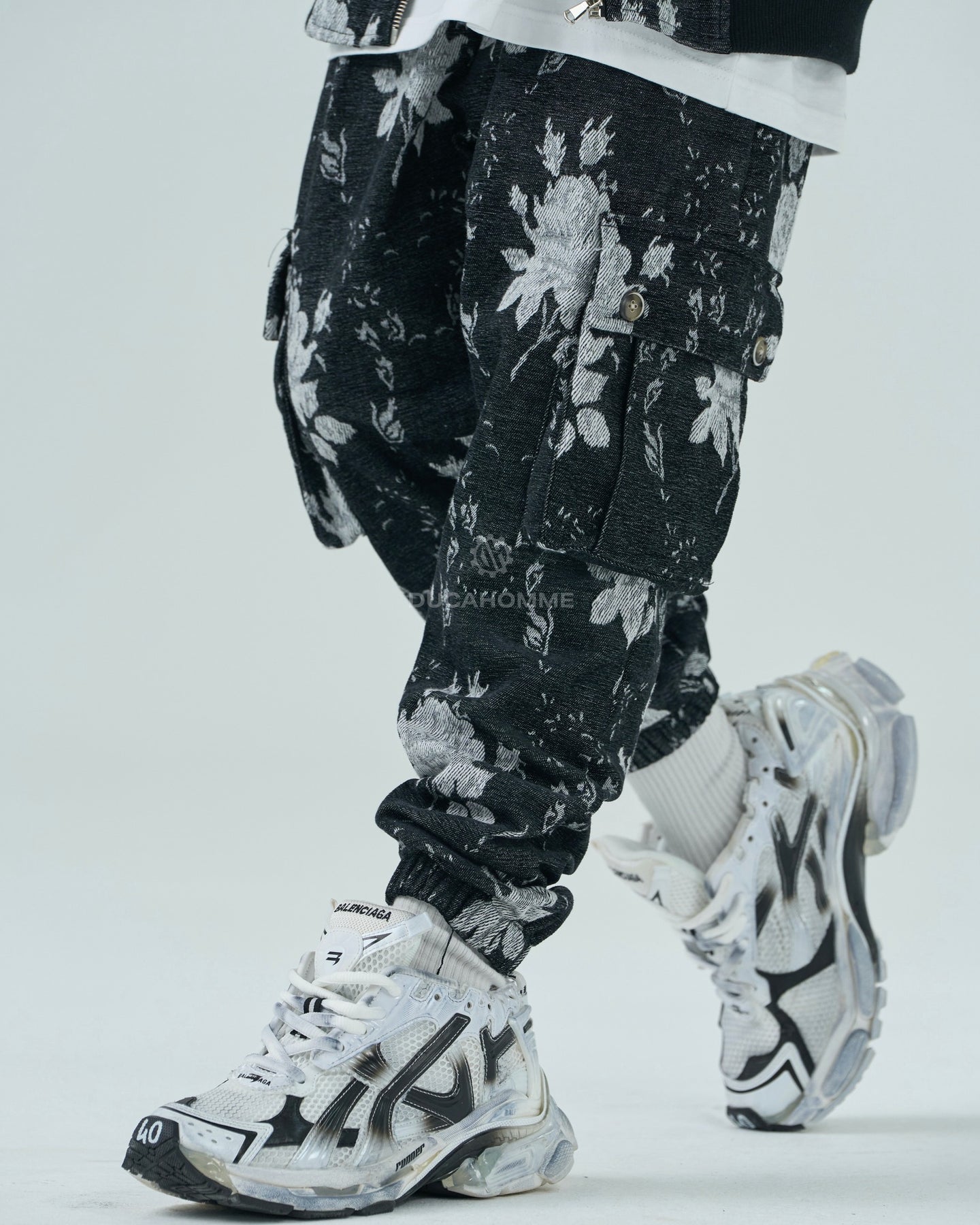 pantalone cargo fantasia floreale con elastico in vita e alle caviglie