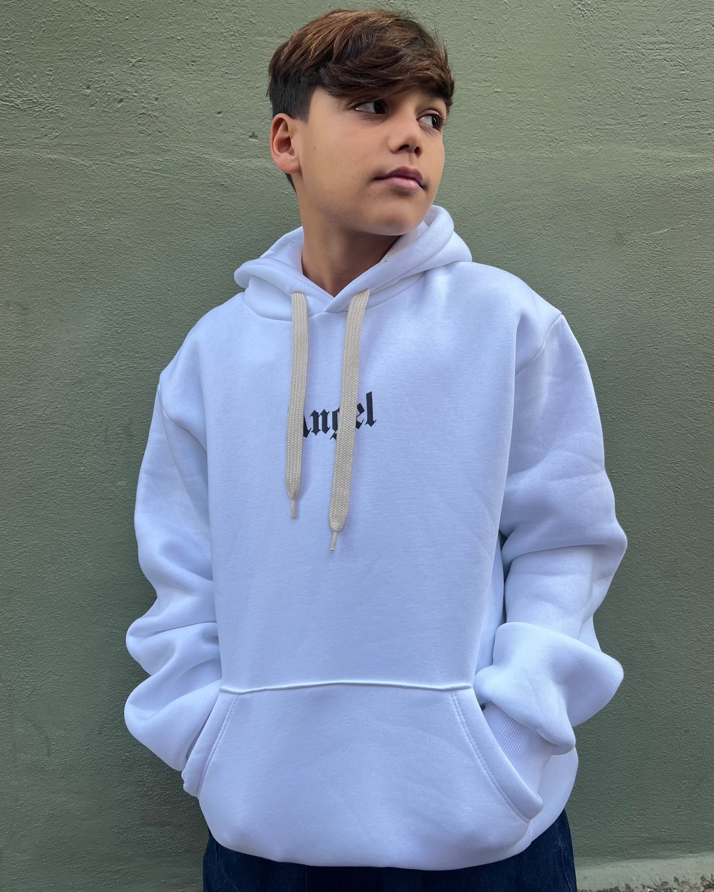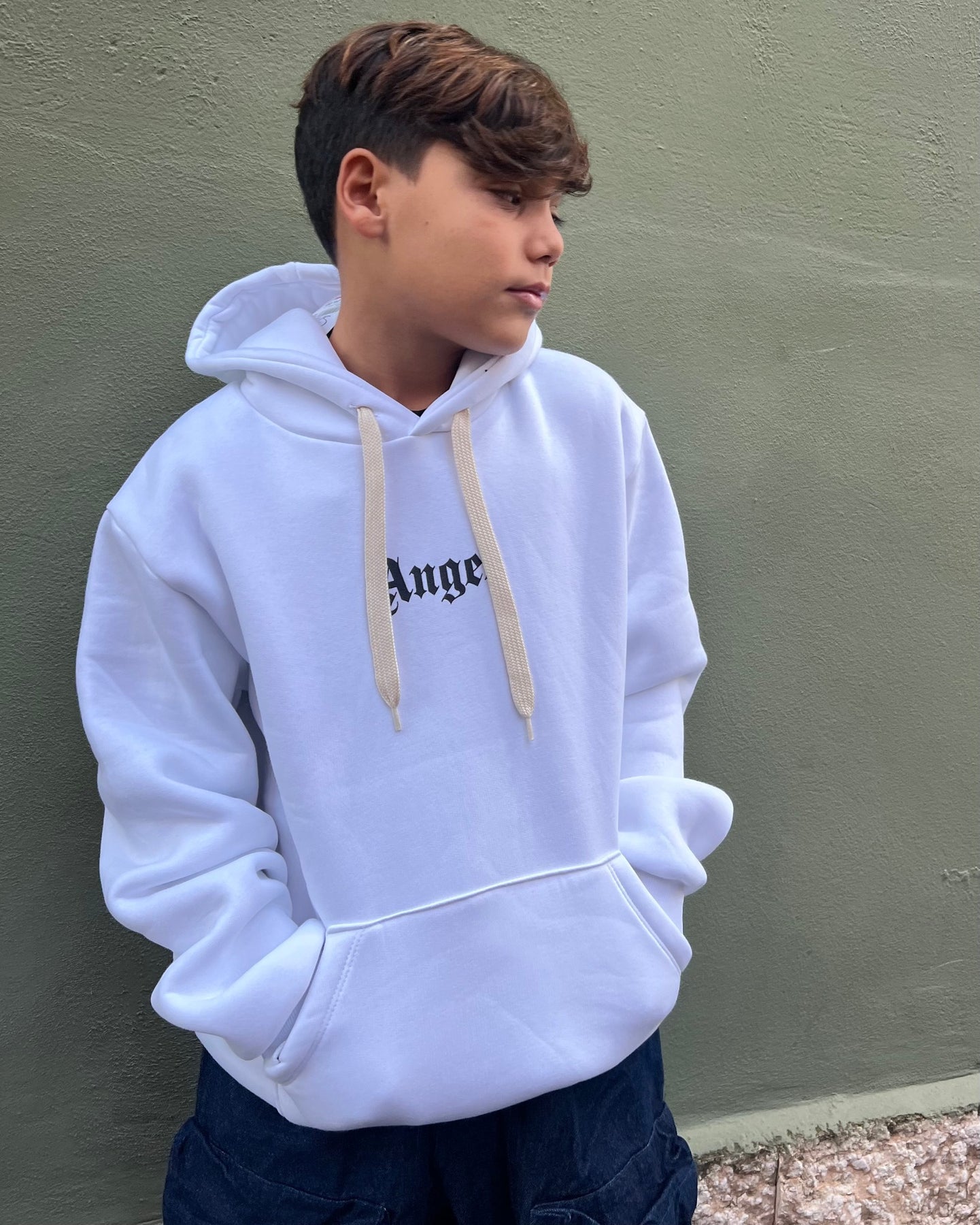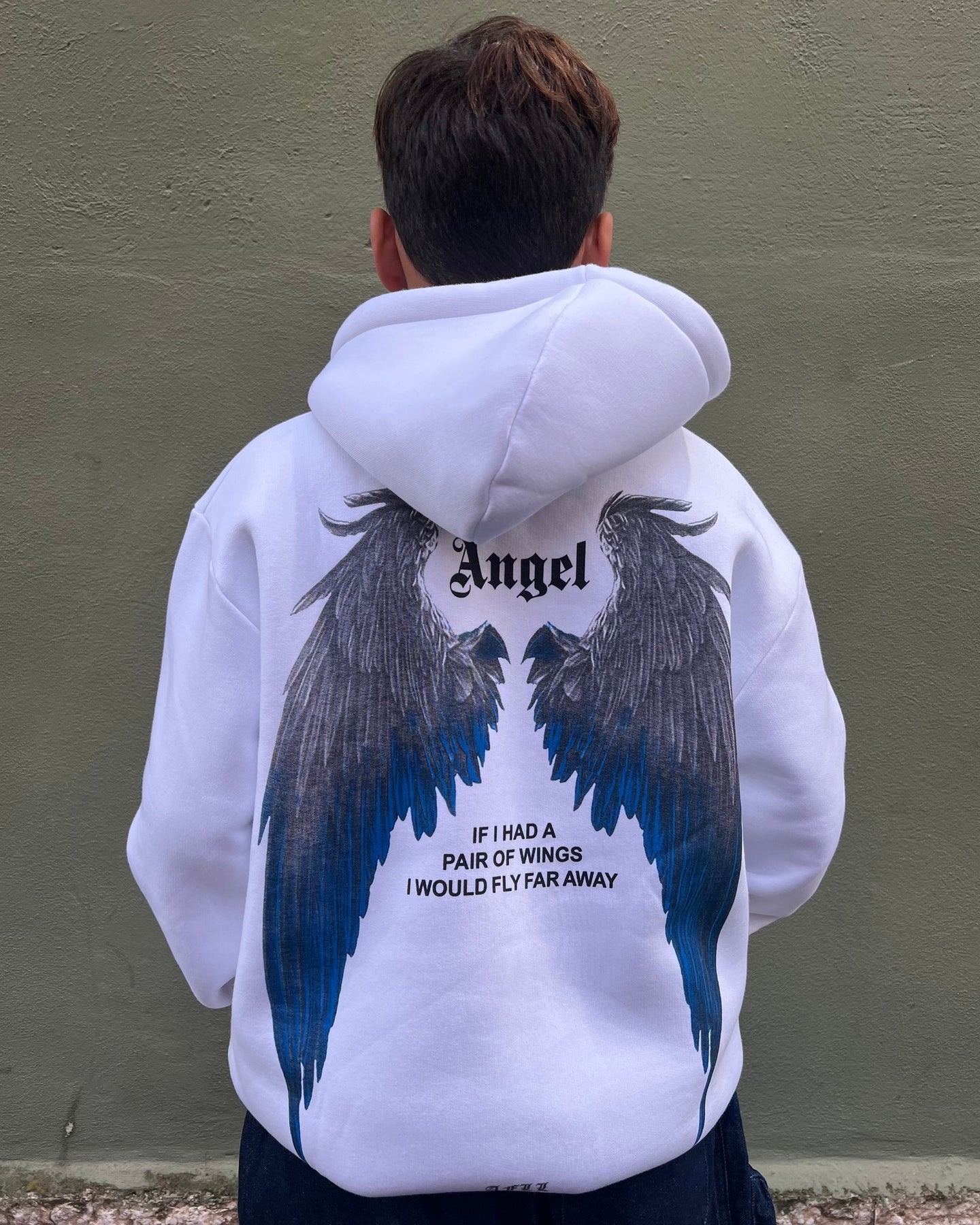 felpa cappuccio stampa ali retro con scritte dettaglio scritta "angel" frontale