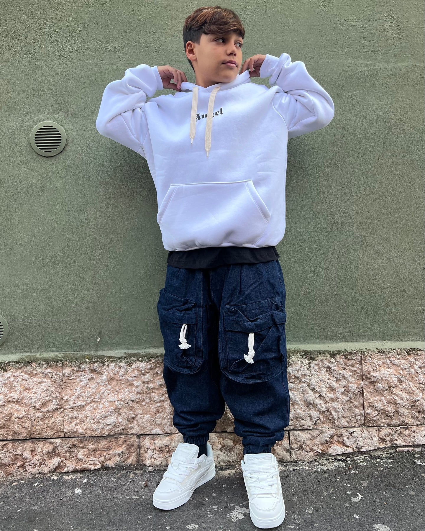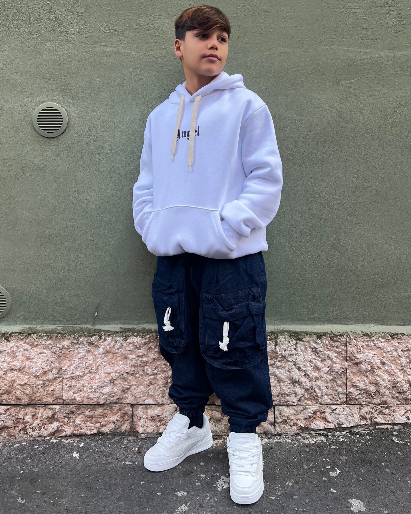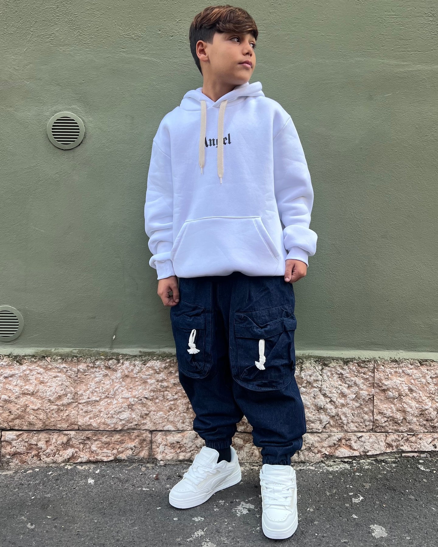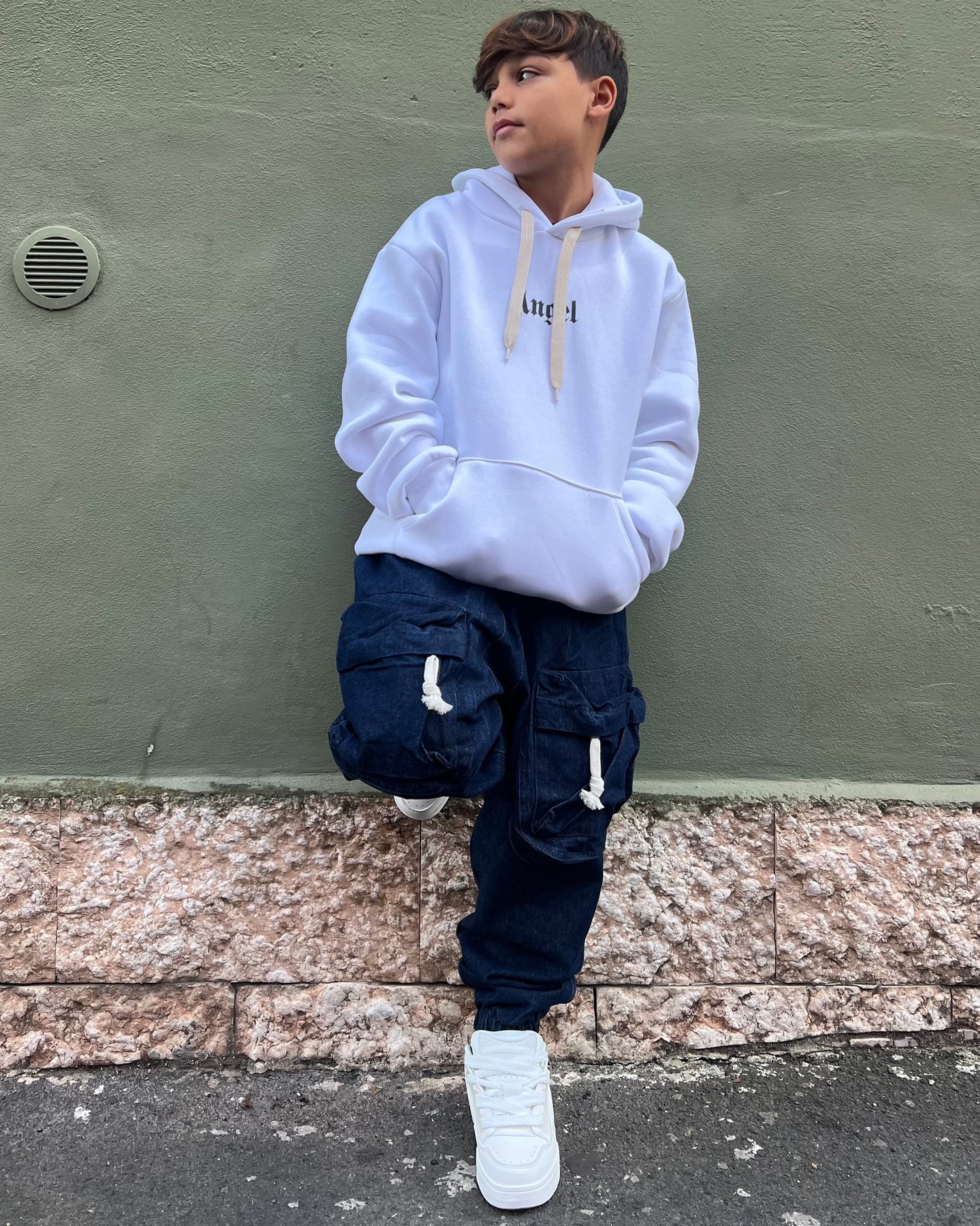 felpa cappuccio stampa ali retro con scritte dettaglio scritta "angel" frontale