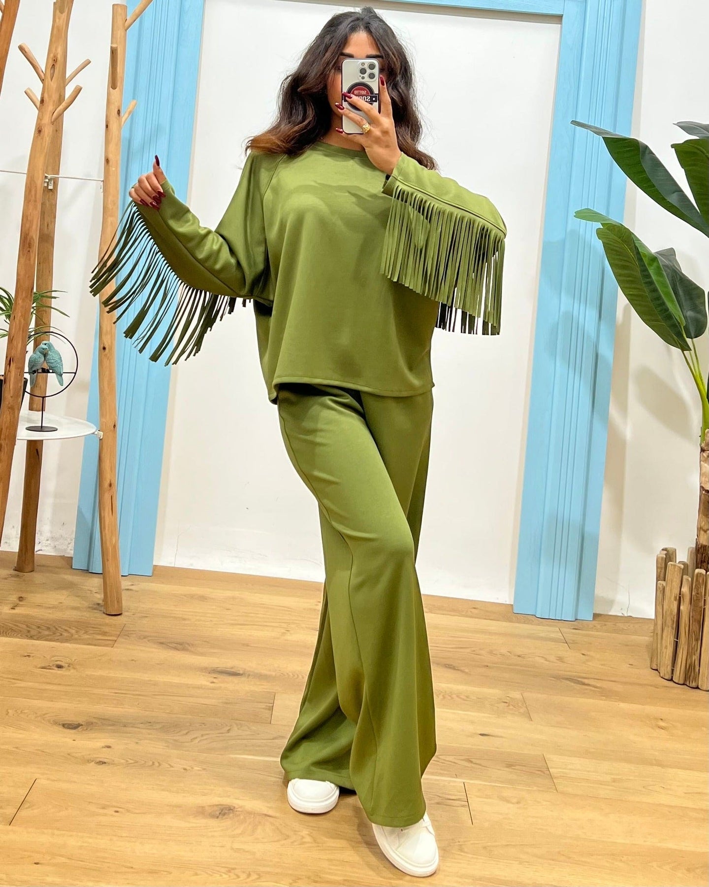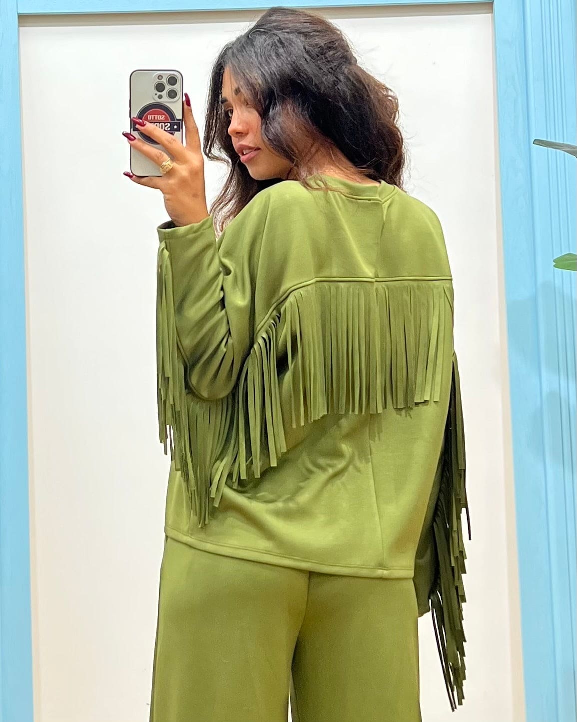 felpa girocollo con frange