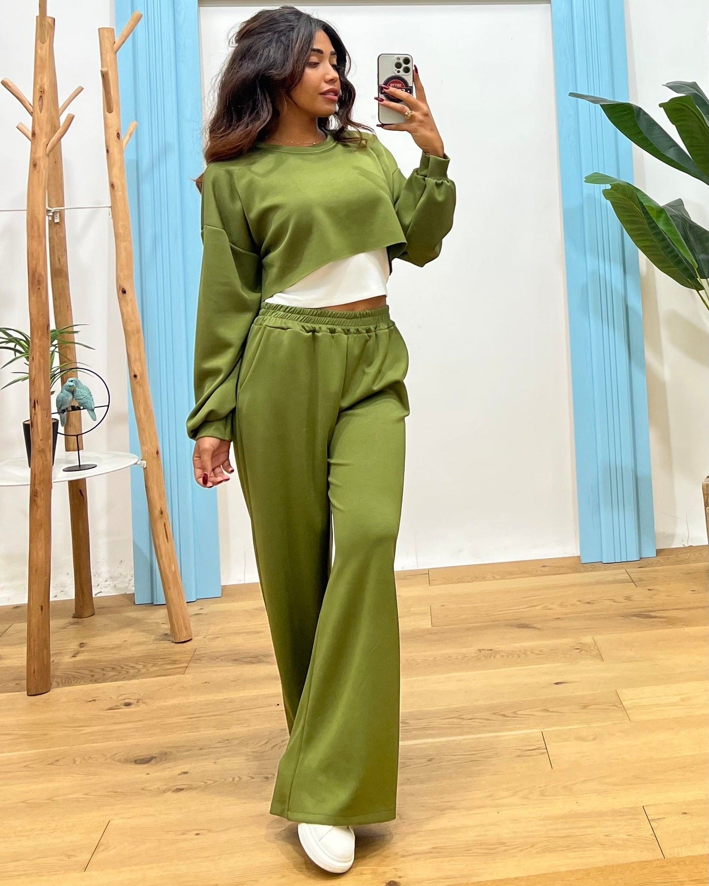 felpa crop con canotta sotto
