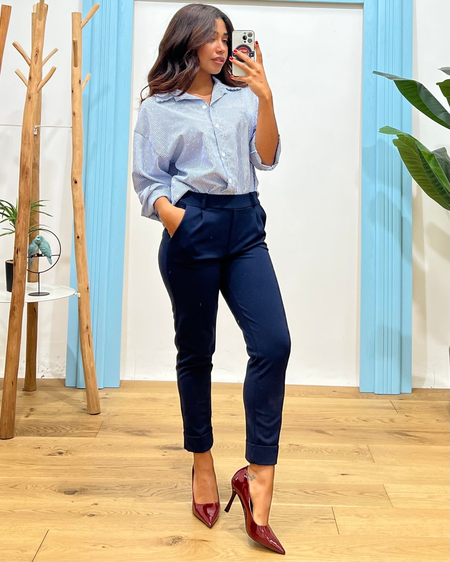 pantalone a sigaretta con risvolto, dettaglio elastico in vita