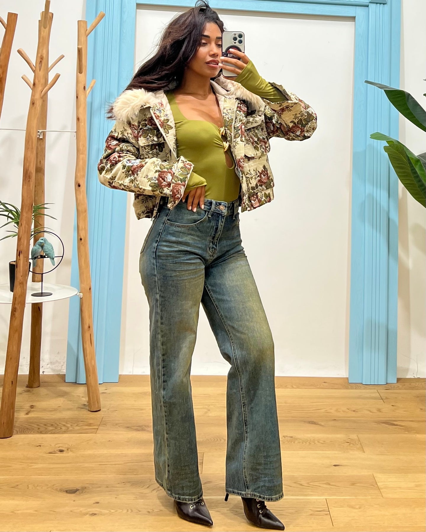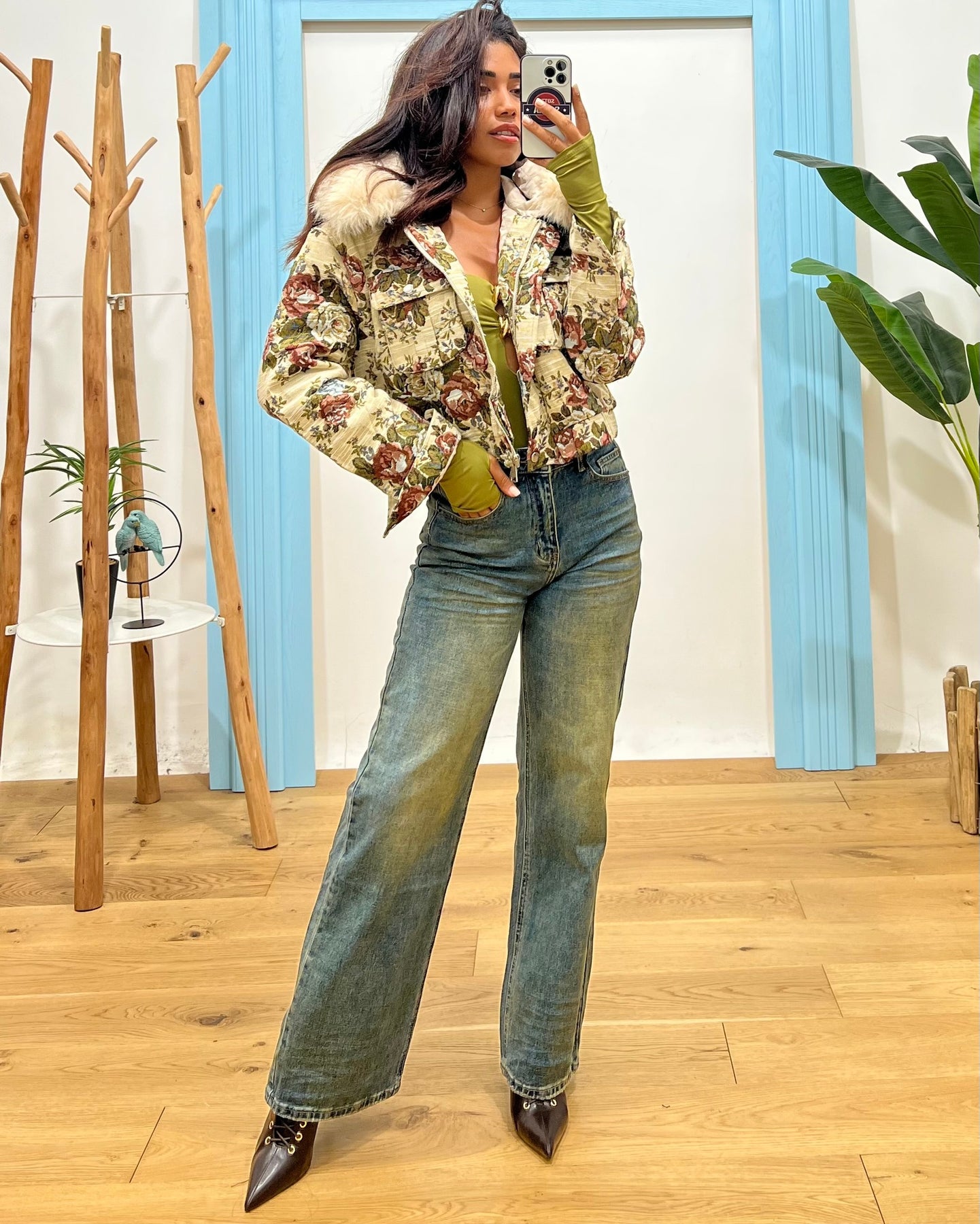 jeans palazzo dettaglio lavaggio con sfumature sabbiate
