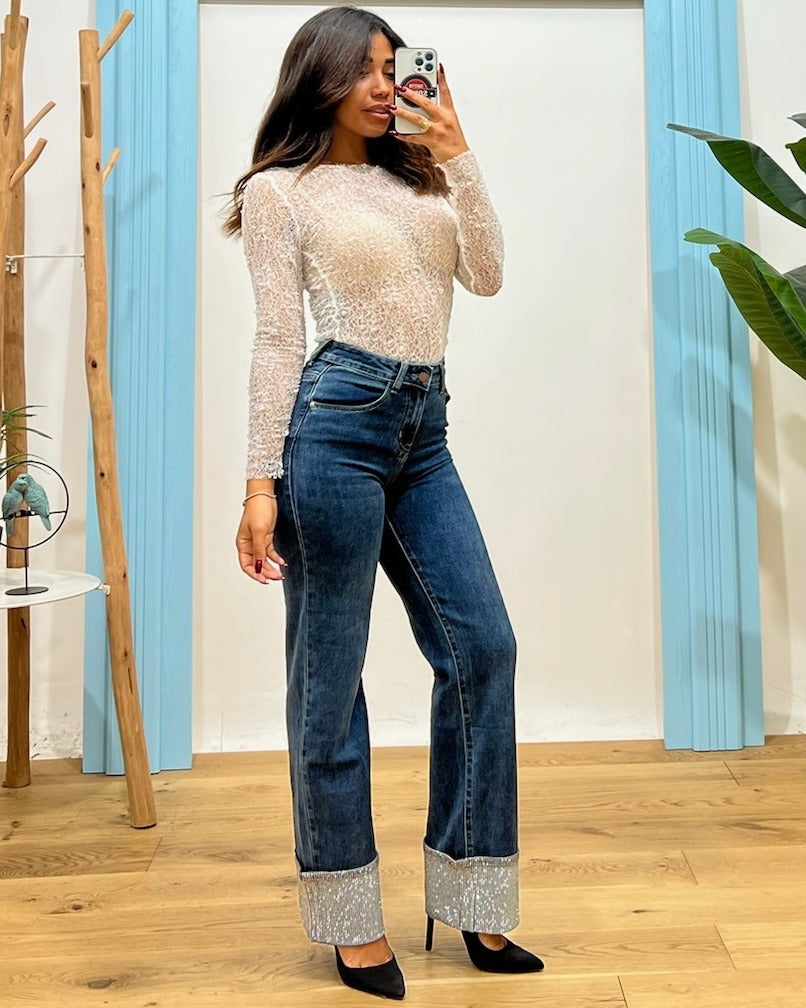 maglia in pizzo con strass
