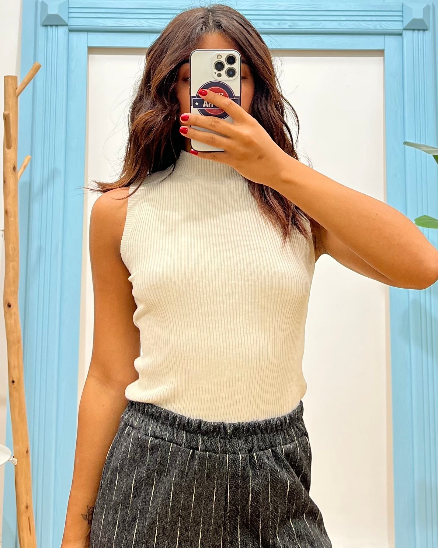maglia lupetto smanicata a costine