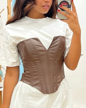 t-shirt con spalline, dettaglio girocollo con passanti e foulard fantasia