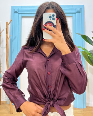 maglia in lycra elasticizzata con spalle scoperte e scollo cratere