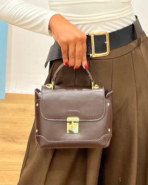 borsa rigida in vernice con patta e lucchetto, dettaglio foulard manico