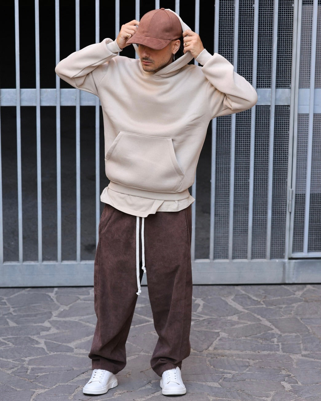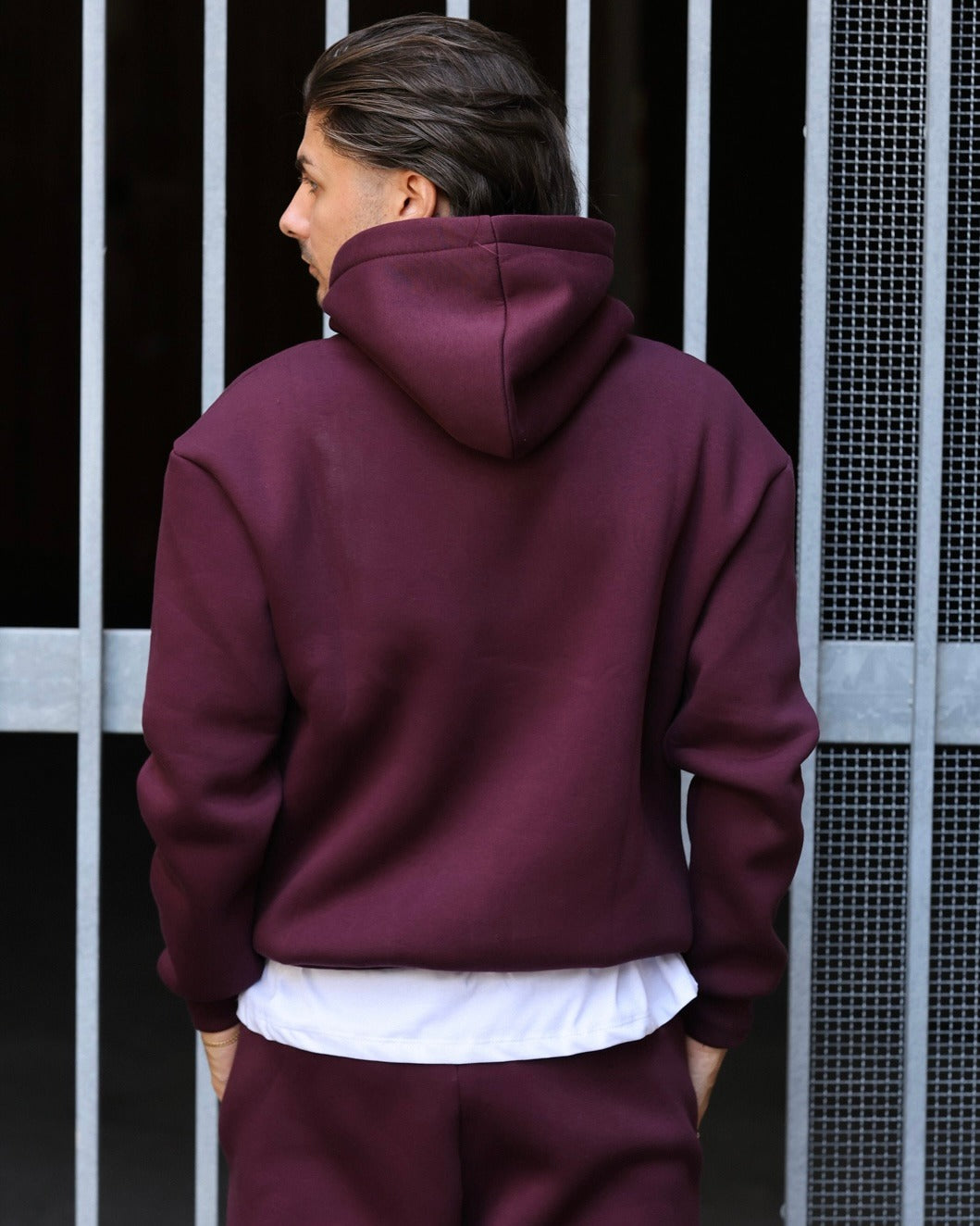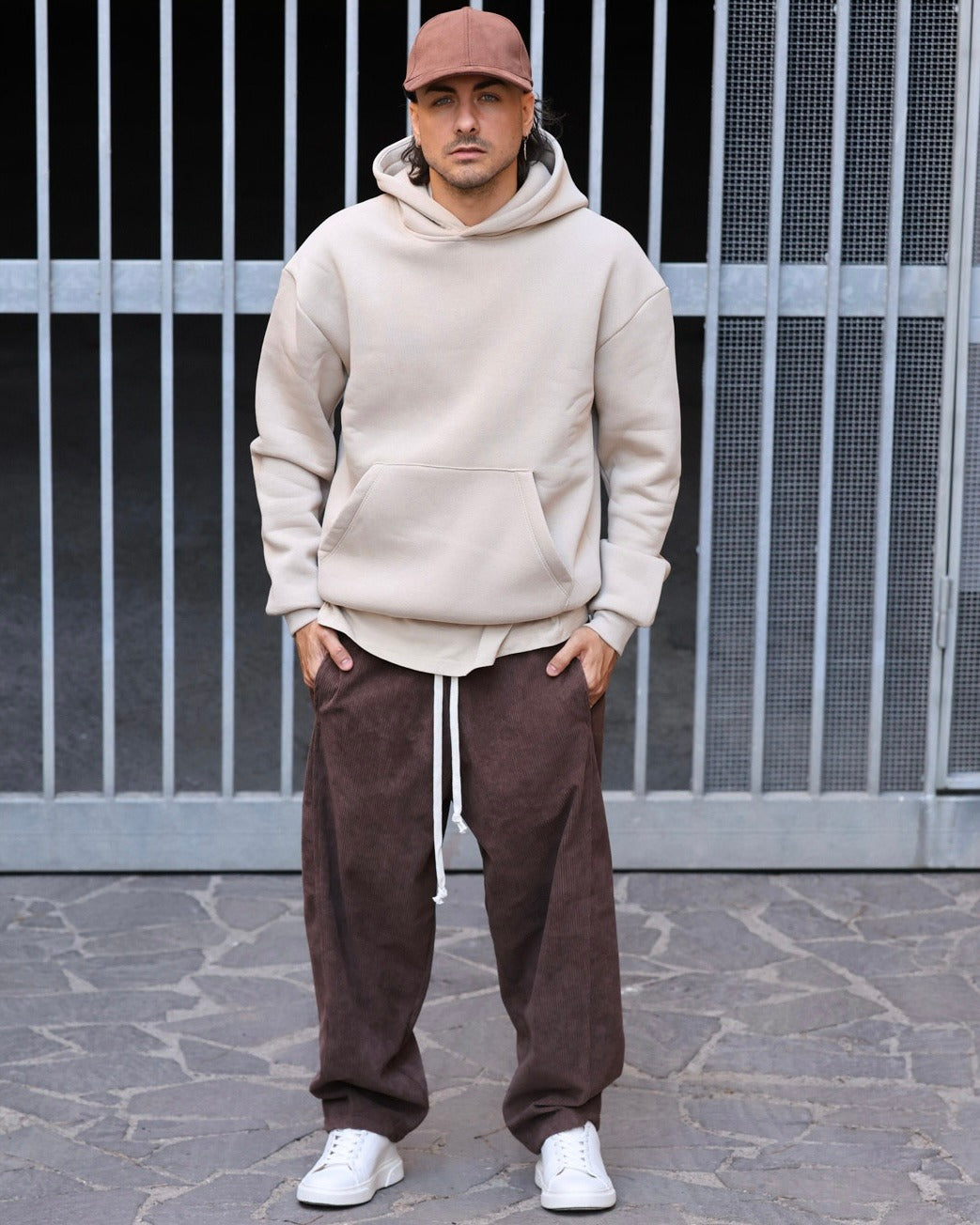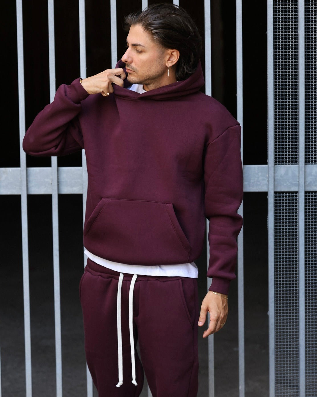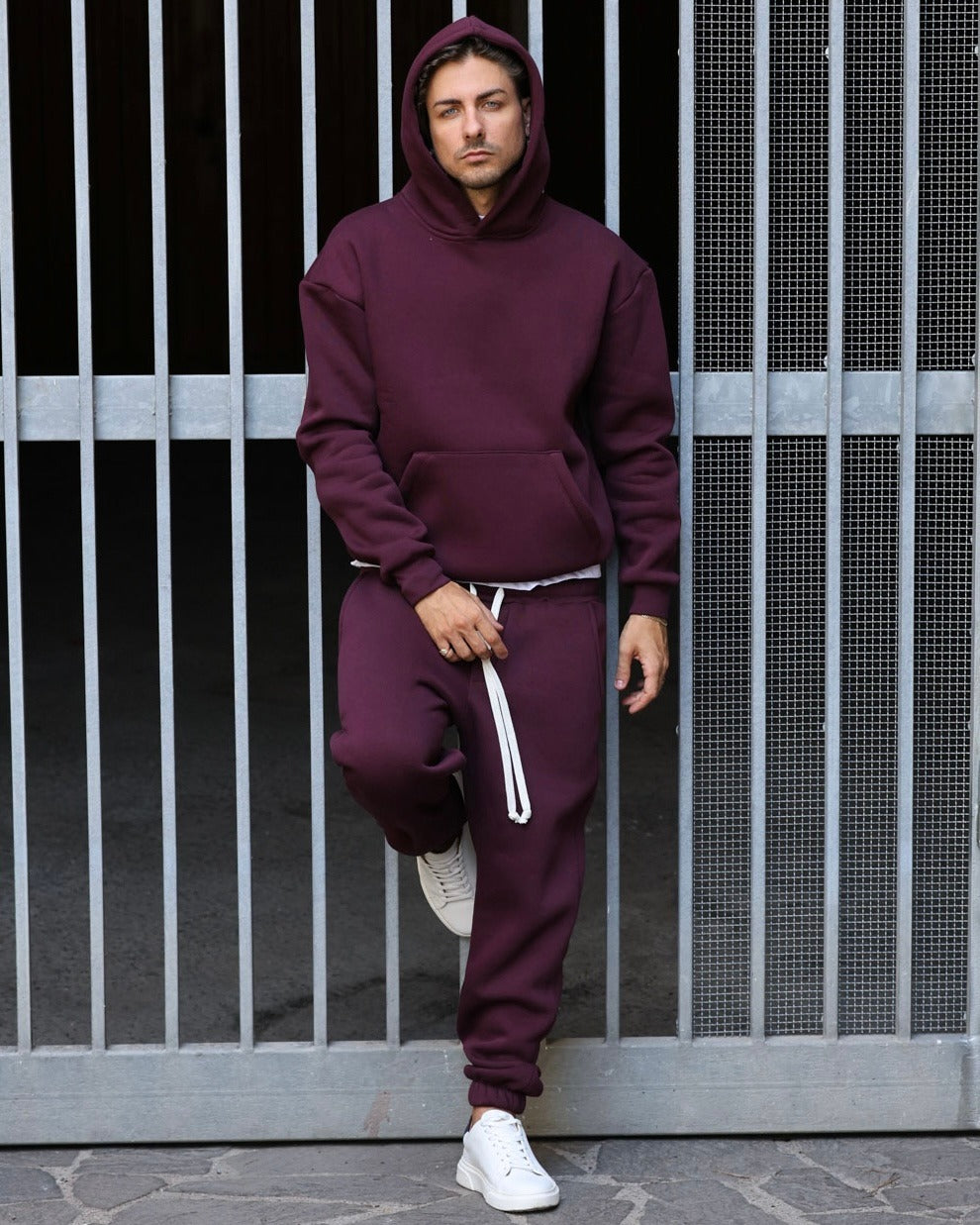 felpa basic tinta unita con cappuccio tasca marsupio anteriore cannole' orlo e polsini "duca homme"