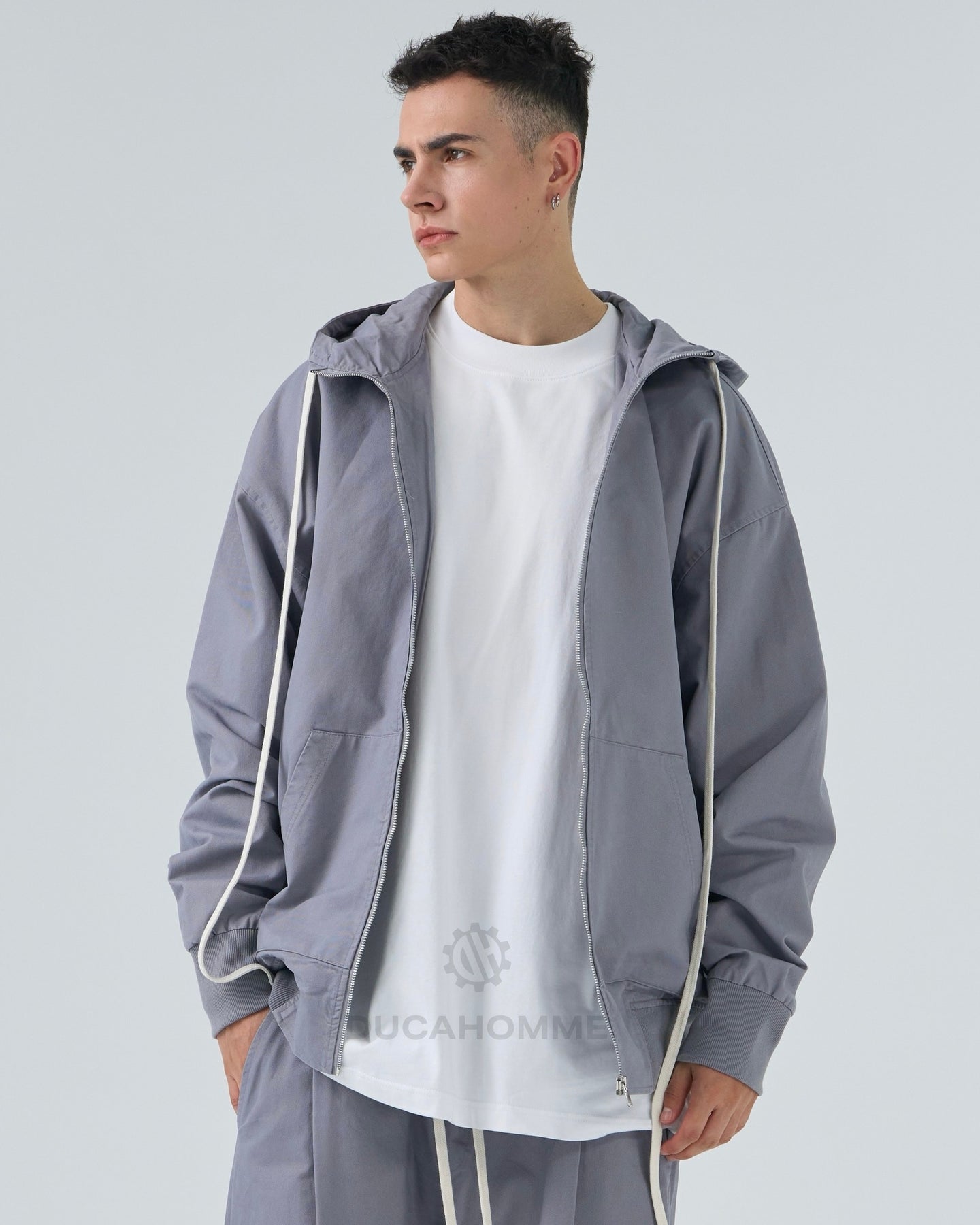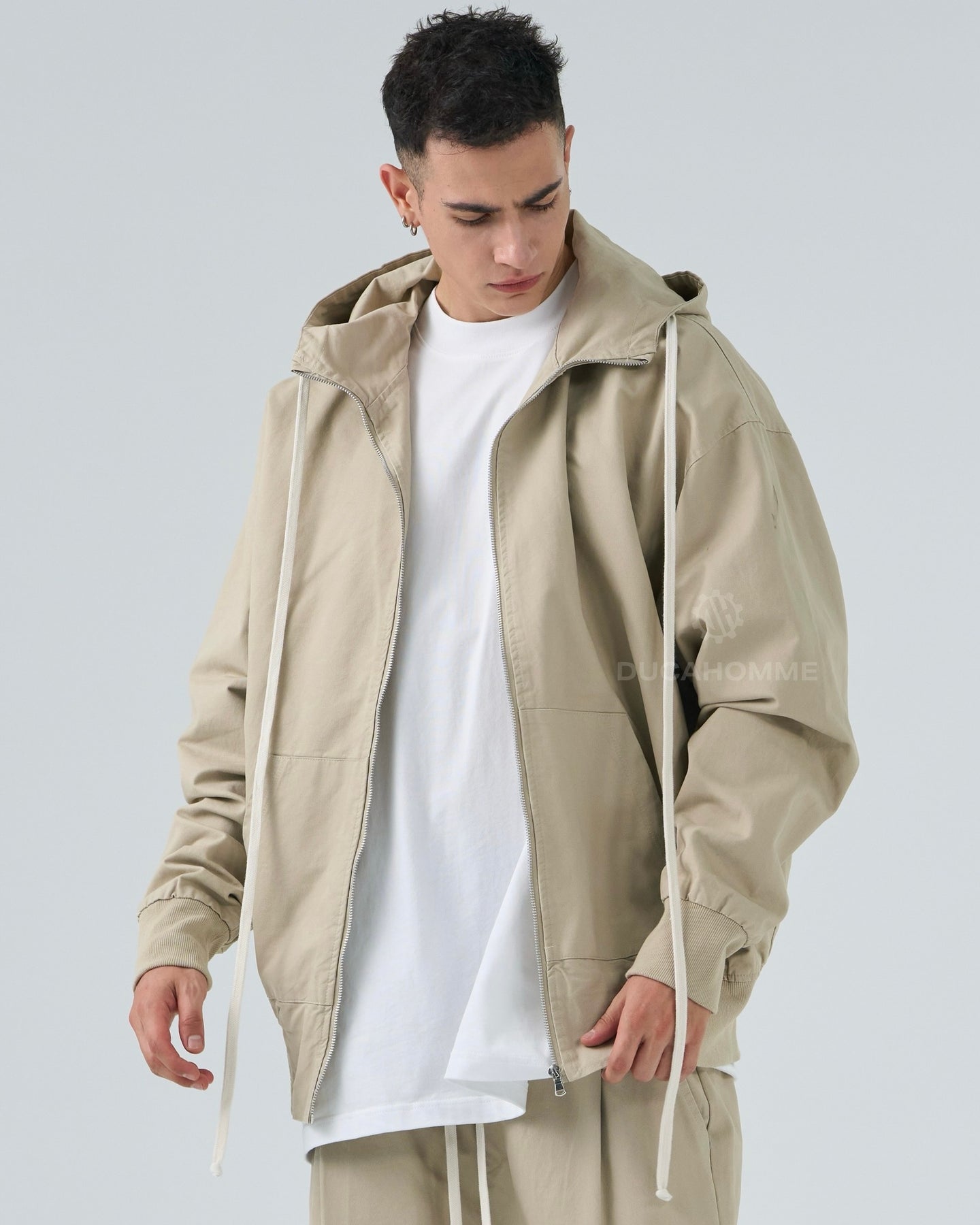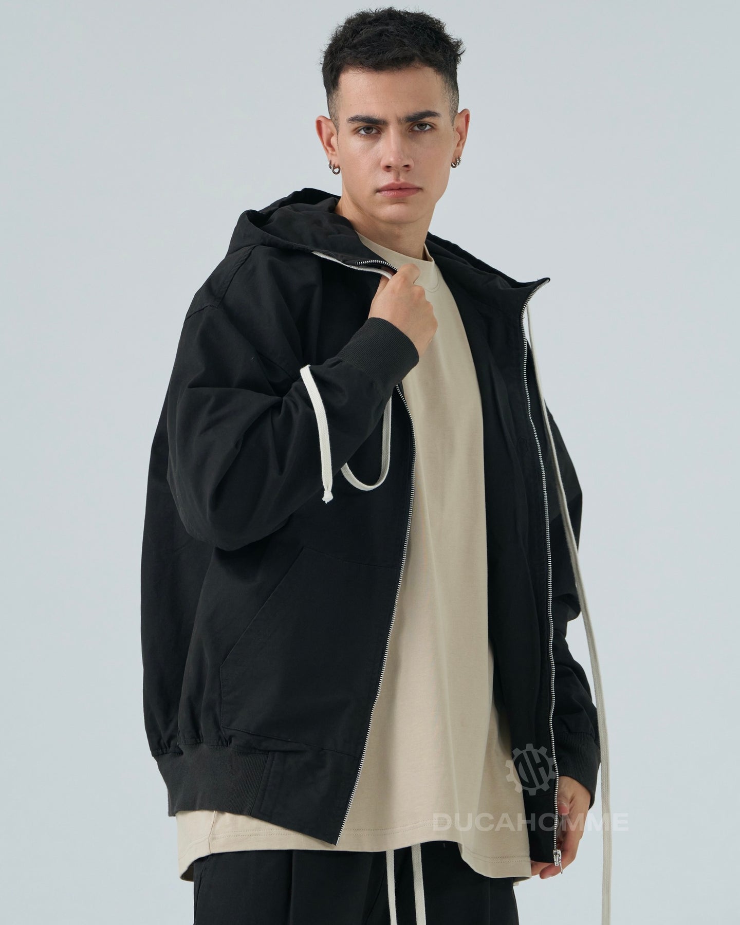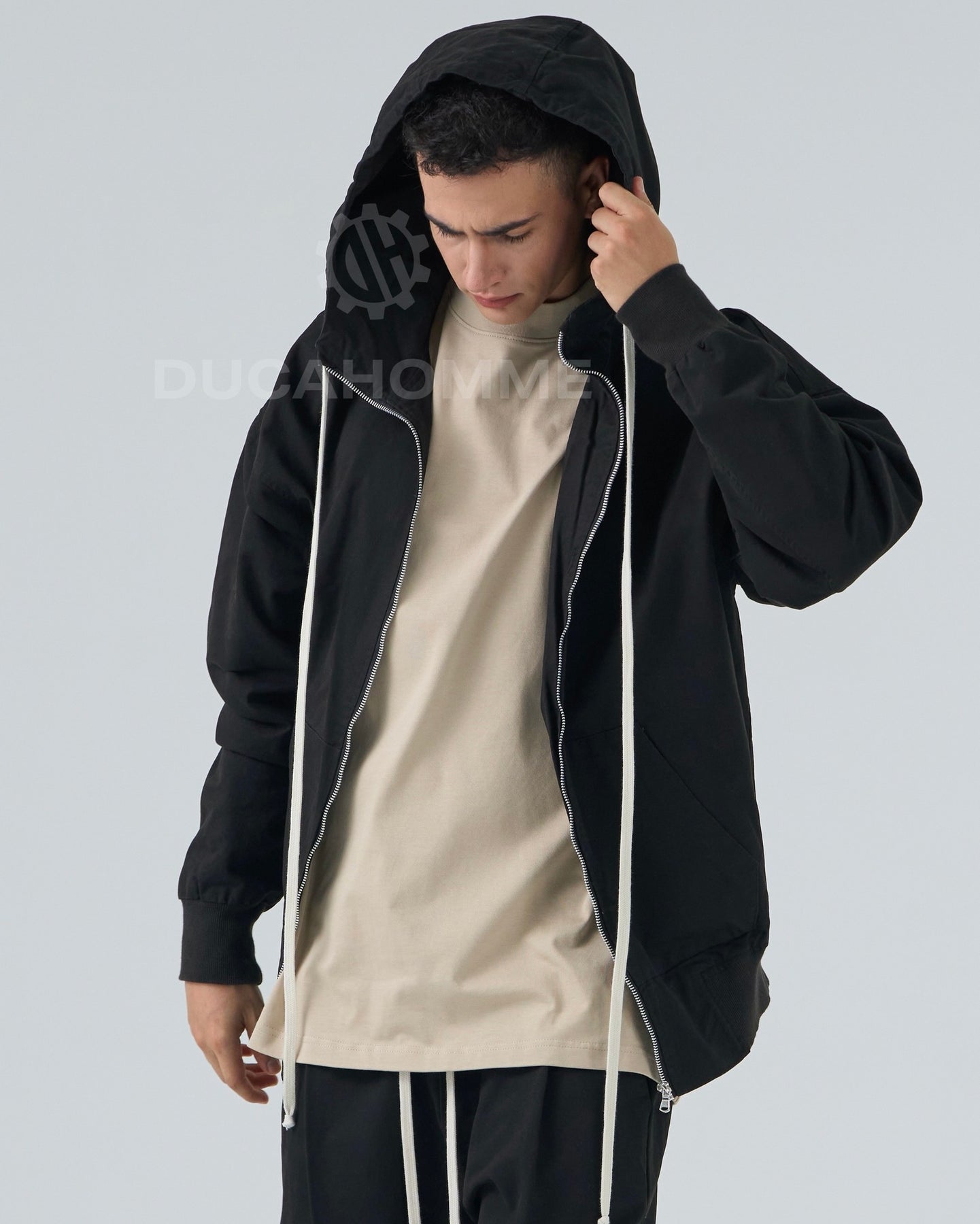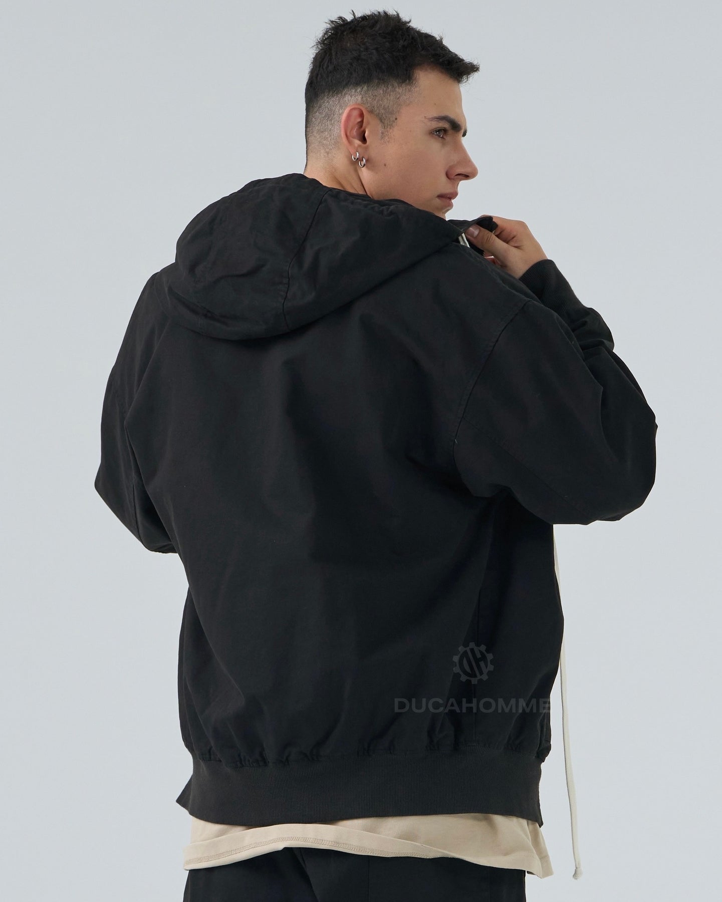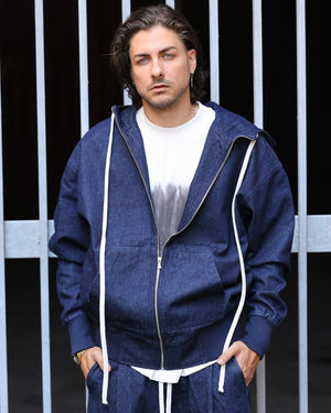 felpa in cotone con cerniera e cappuccio cannolè orlo "duca homme"