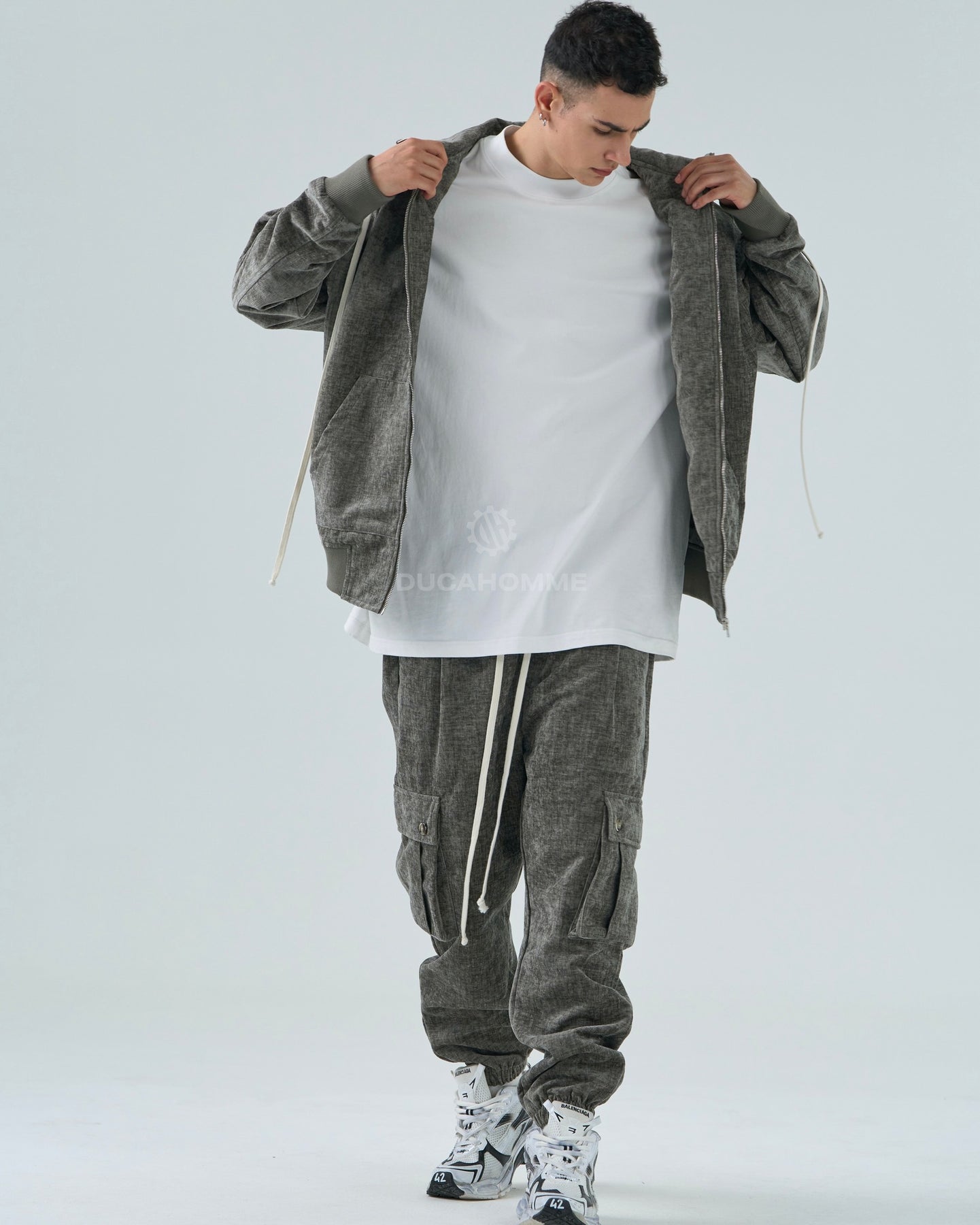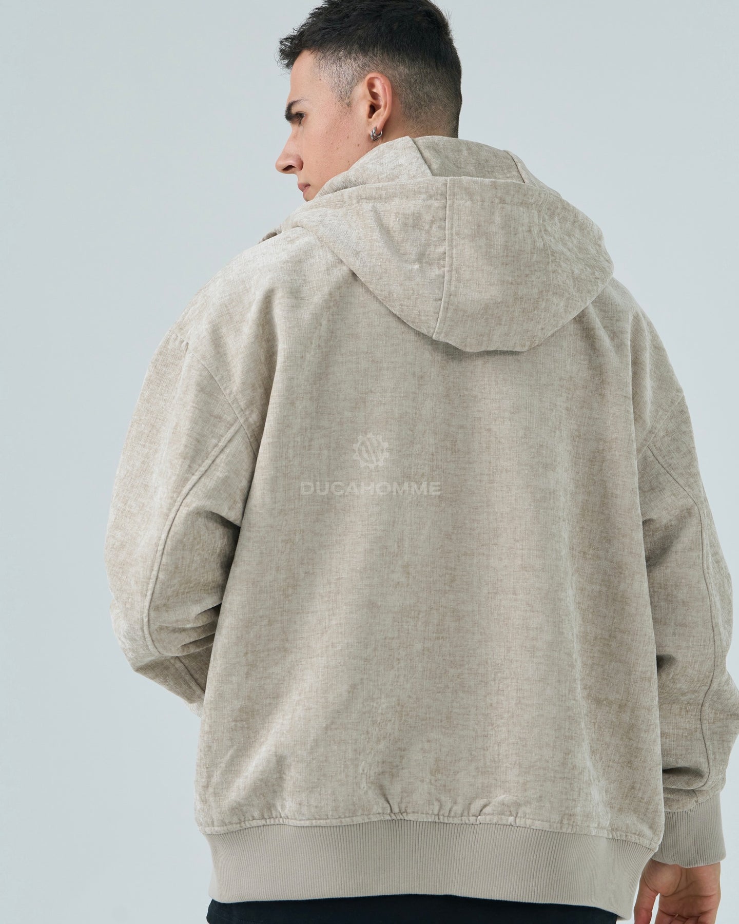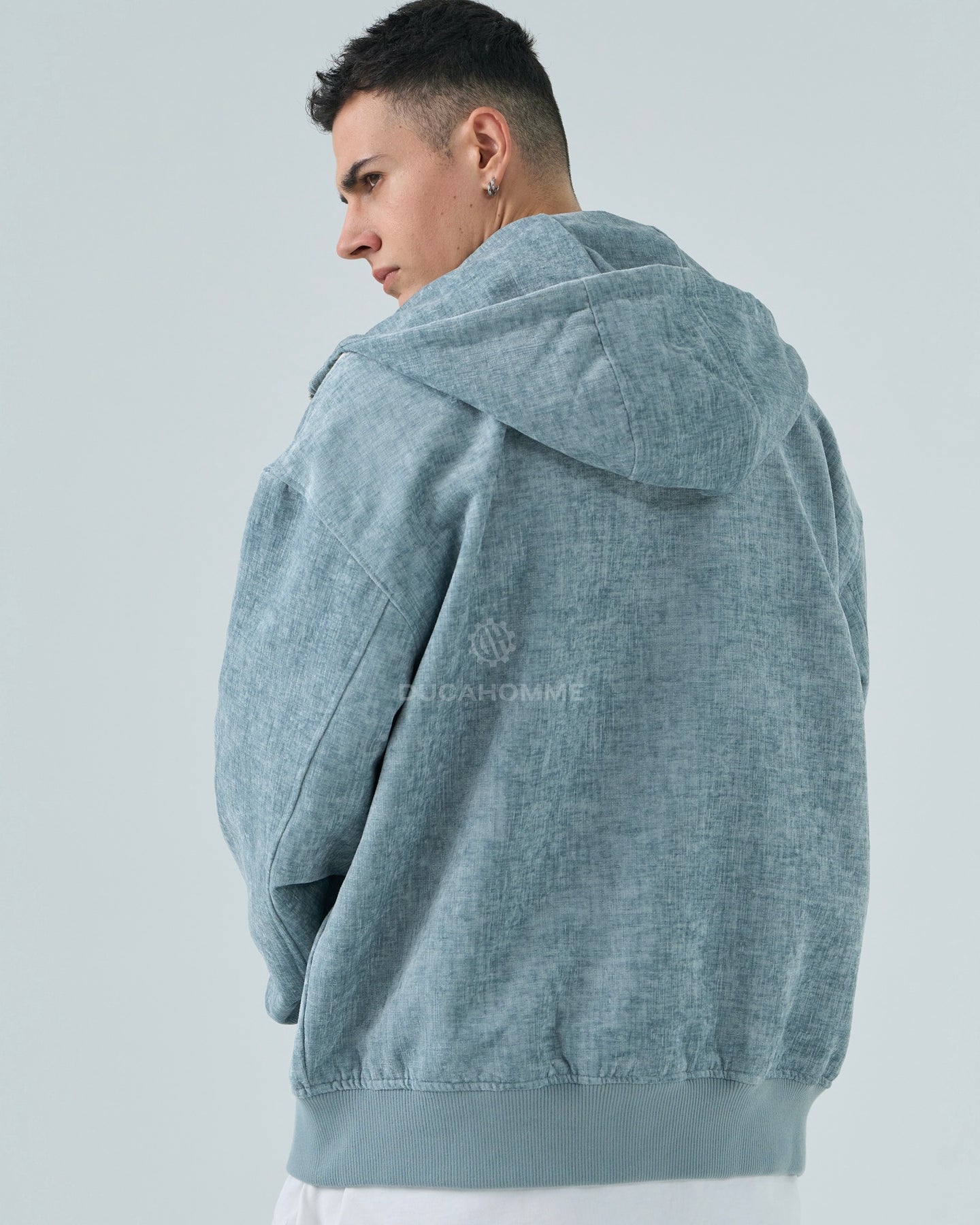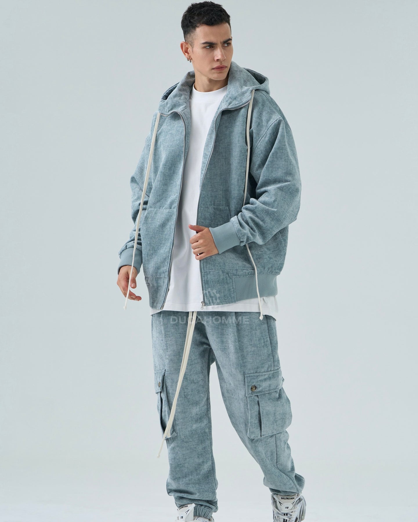 felpa in velluto melange con zip, lacci lunghi e cappuccio