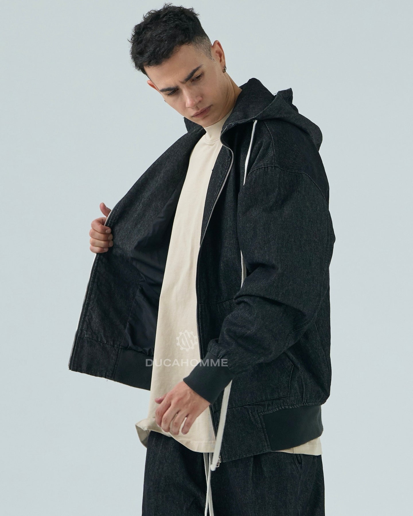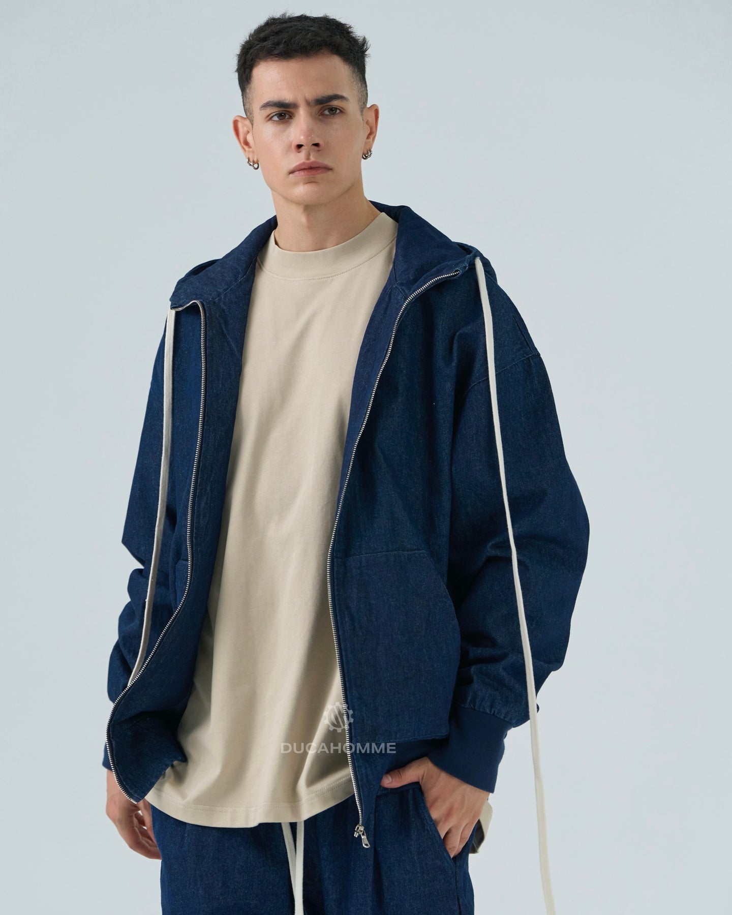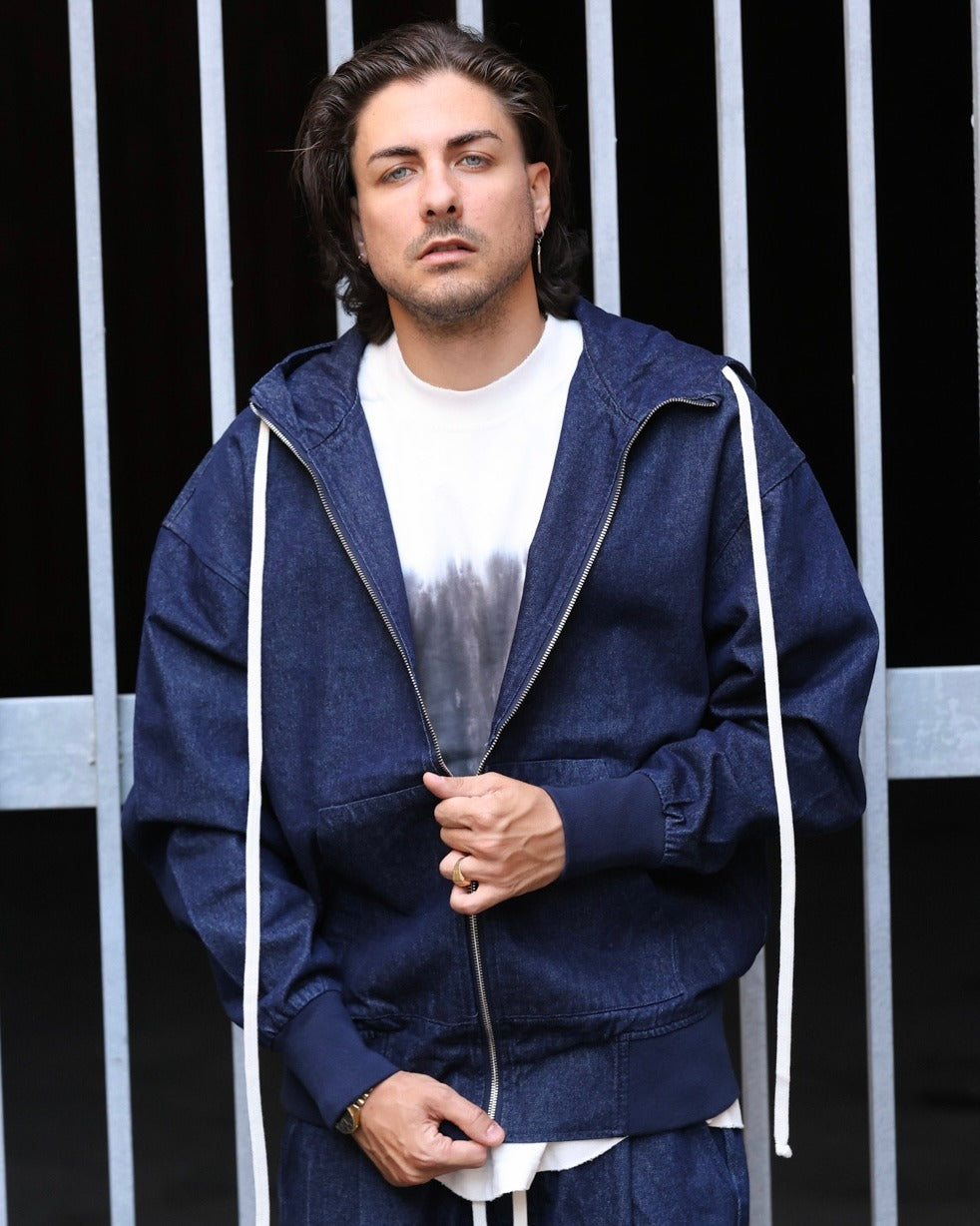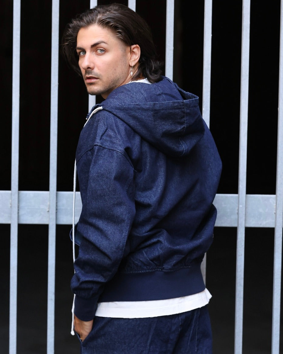 felpa jeans con cappuccio e zip "duca homme"