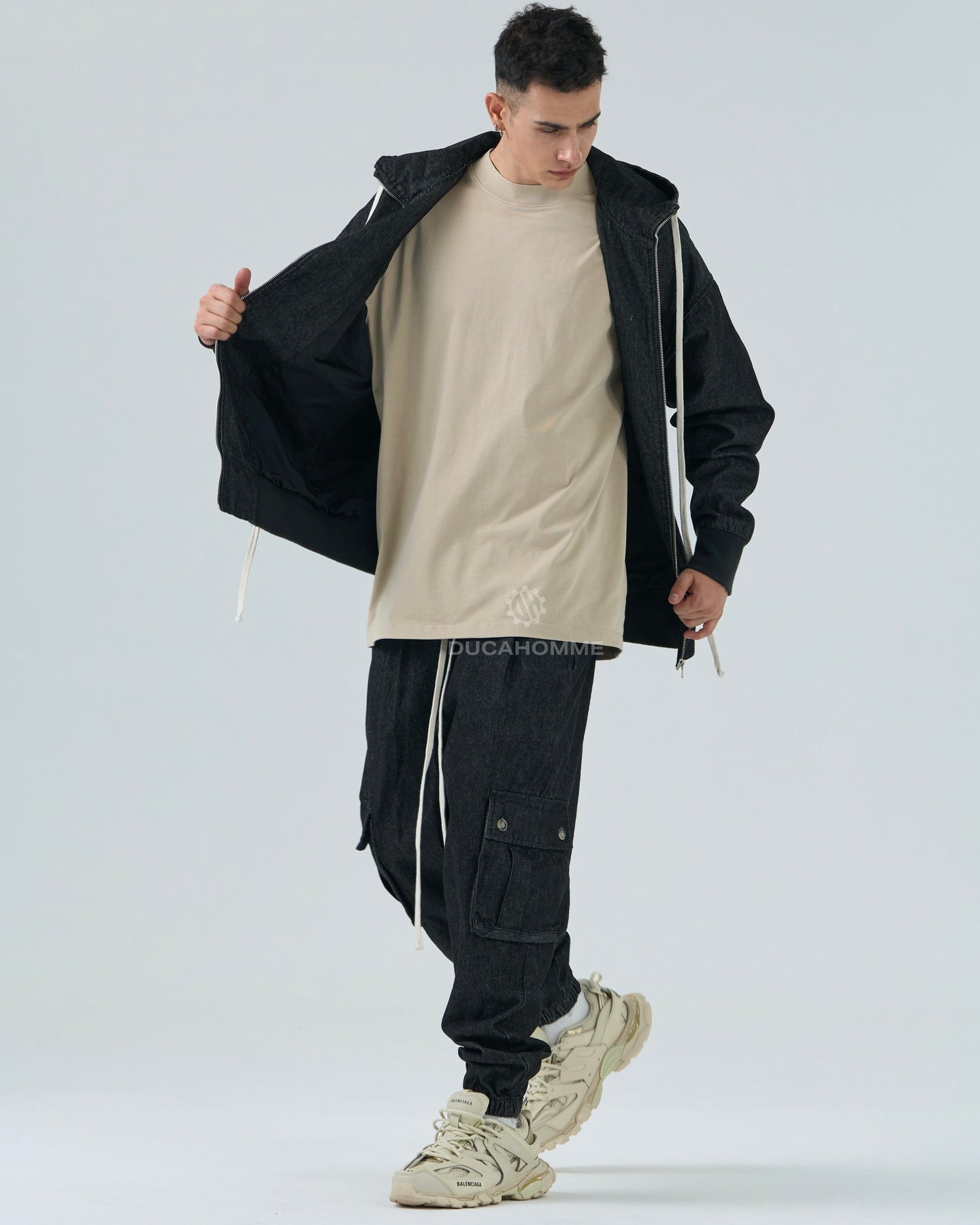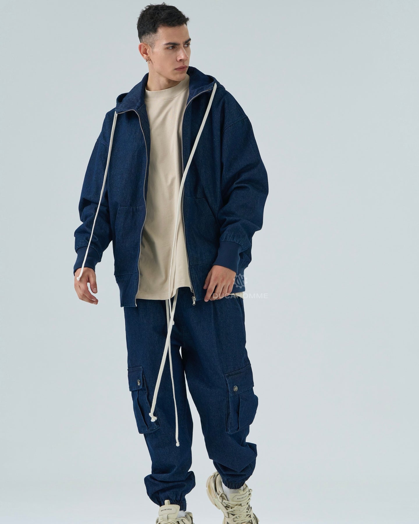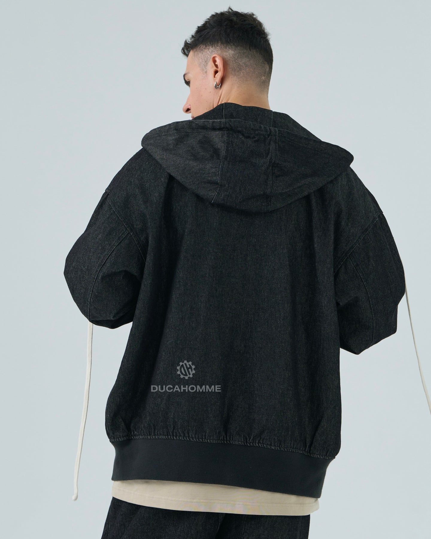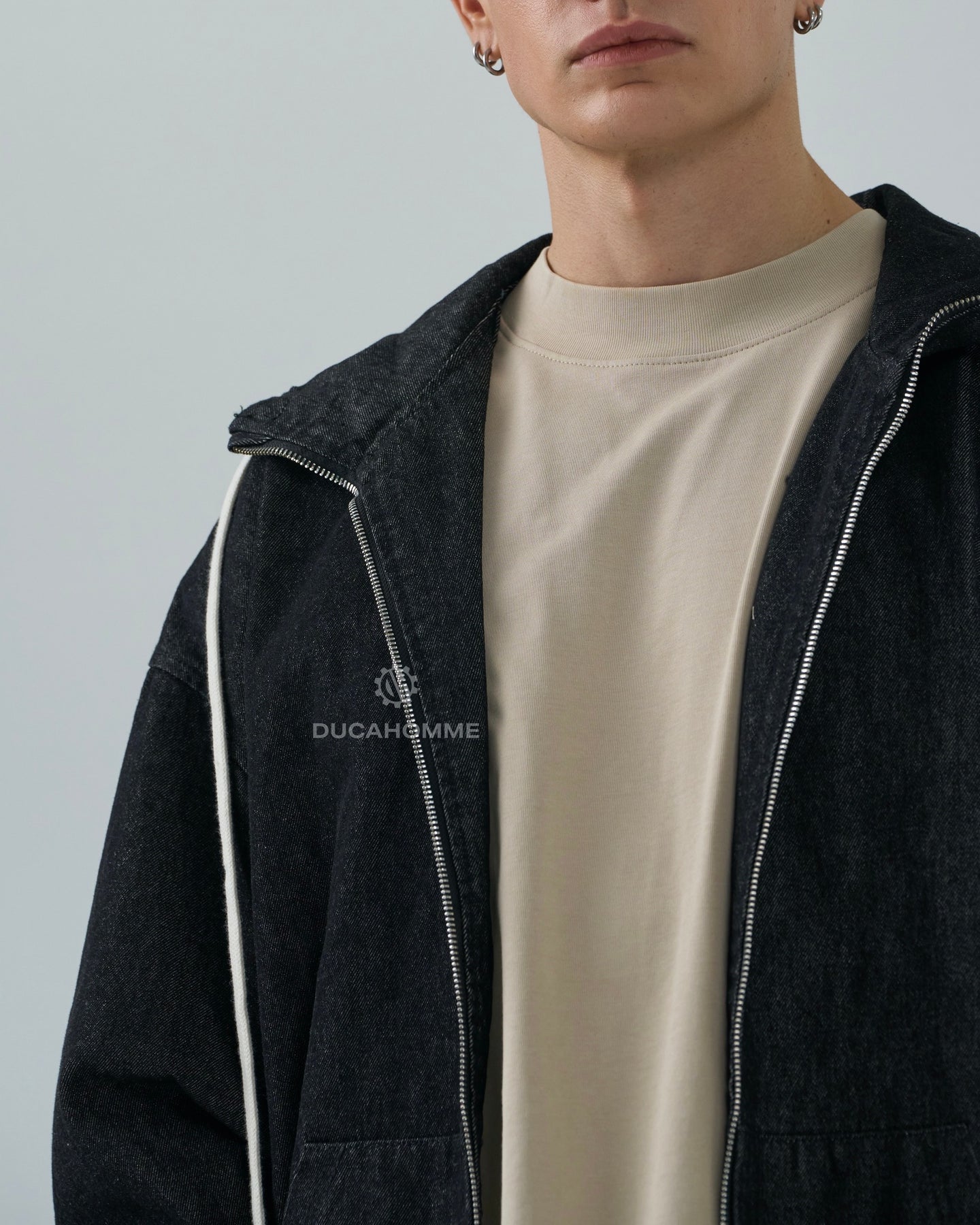 felpa jeans con cappuccio e zip "duca homme"