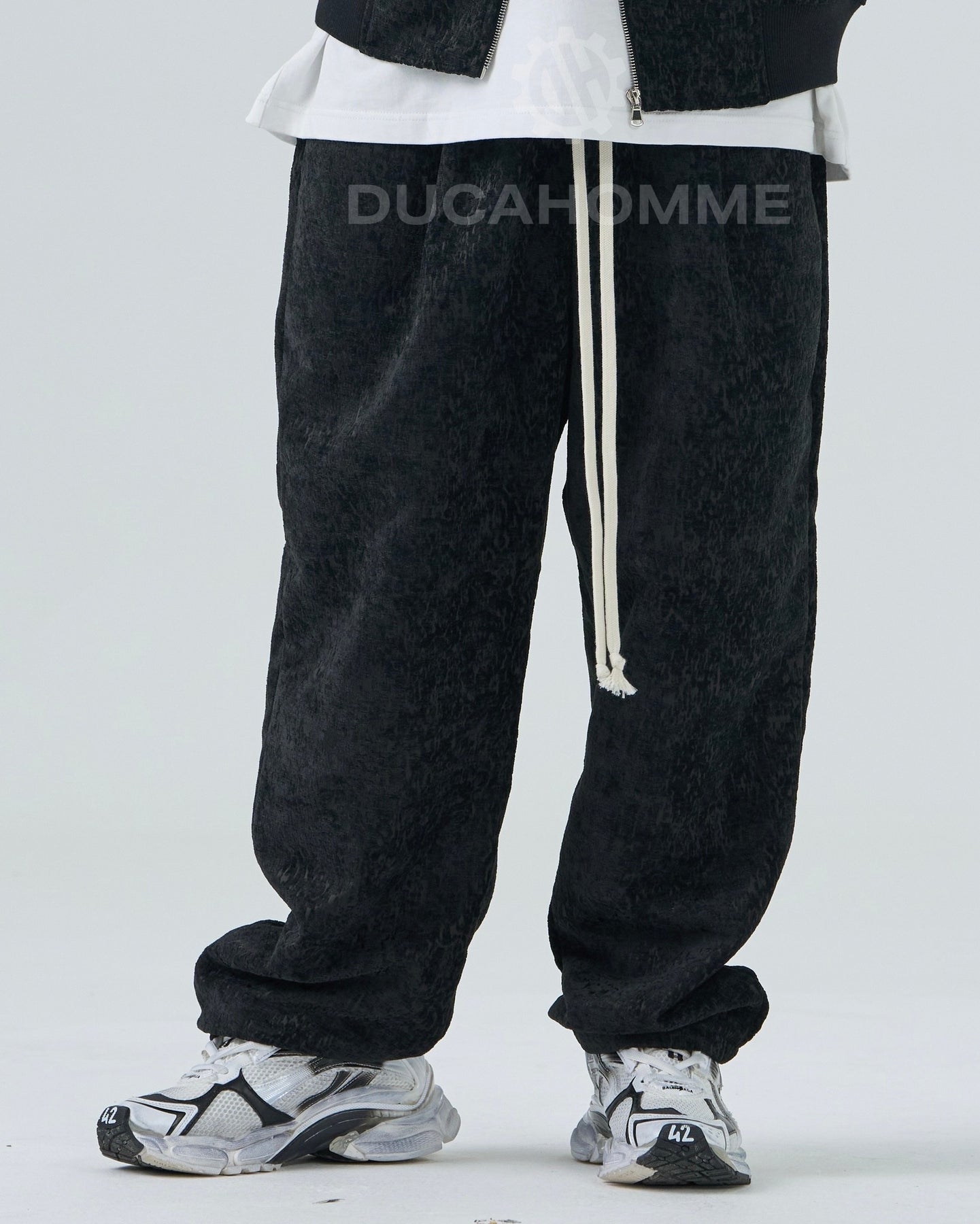 pantalone velluto trama in rilievo elastico in vita con laccio dettaglio tasche filo retro con bottoncino "duca homme"