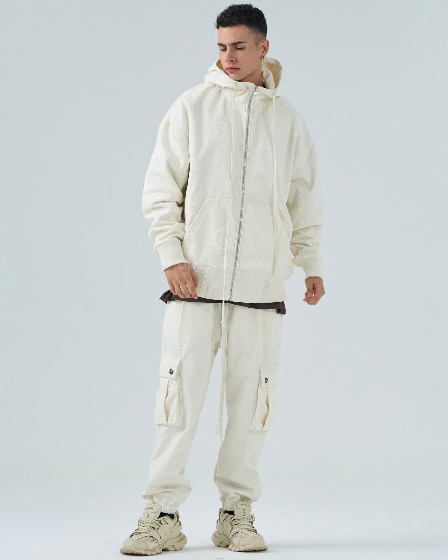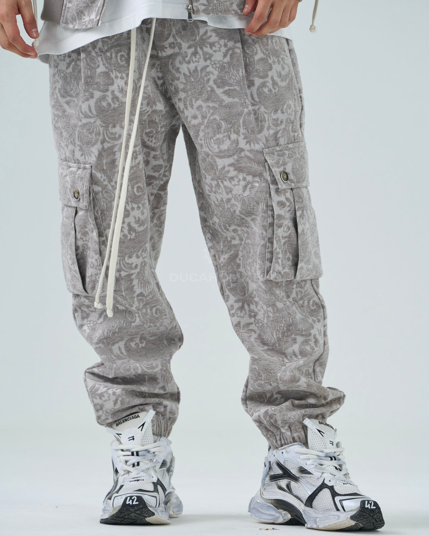 pantalone cargo damascato tasconi laterali con chiusura bottone elastico in vita orlo cannolè