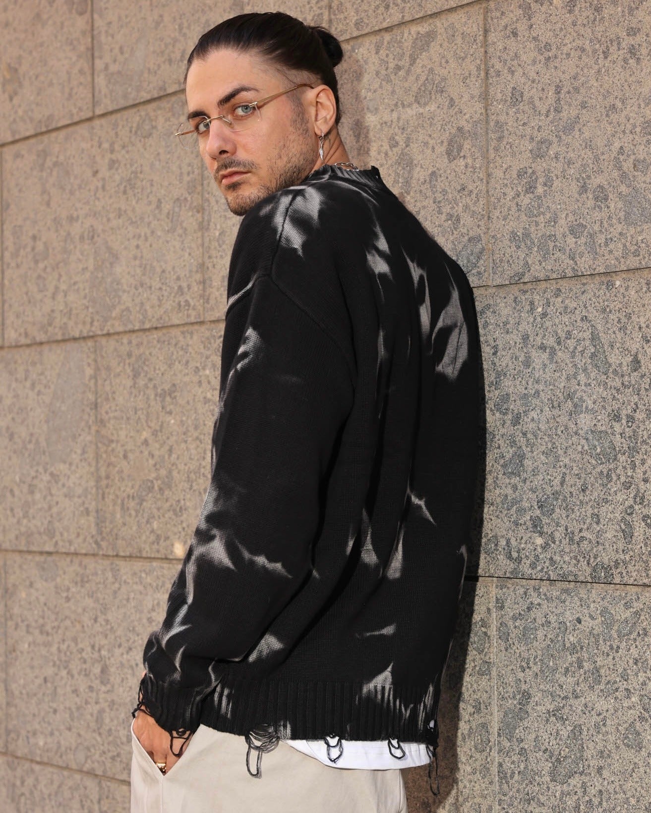 pullover girocollo dettaglio lavaggio con sfumature orlo effetto rovinato