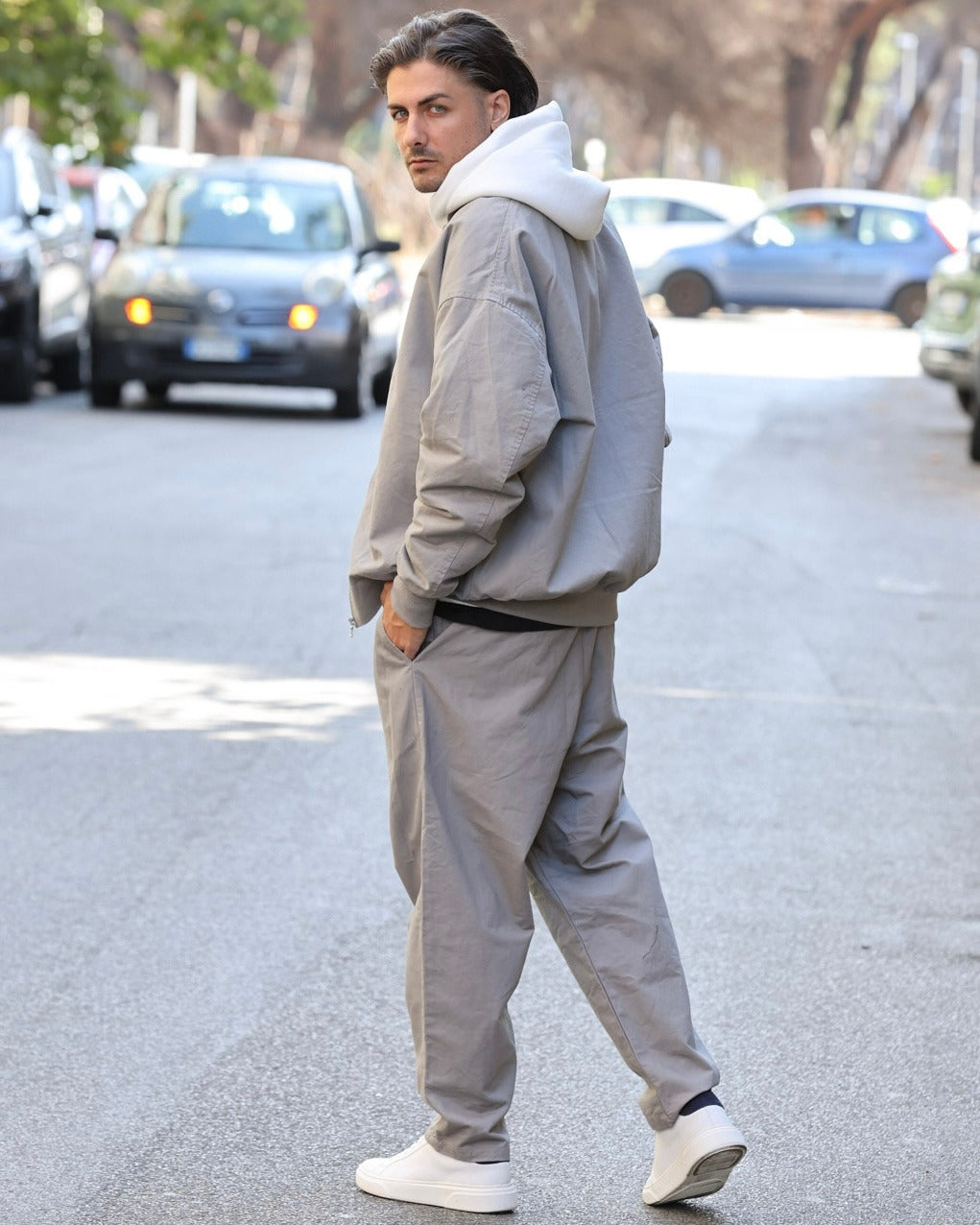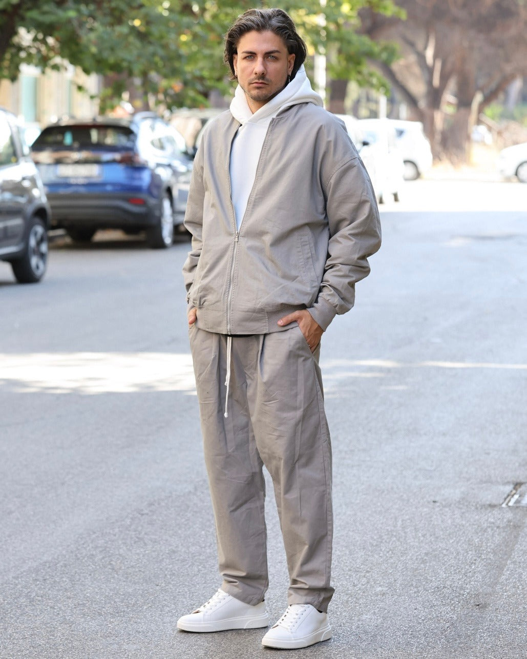pantalone baggy in cotone elastico in vita con laccio "duca homme"