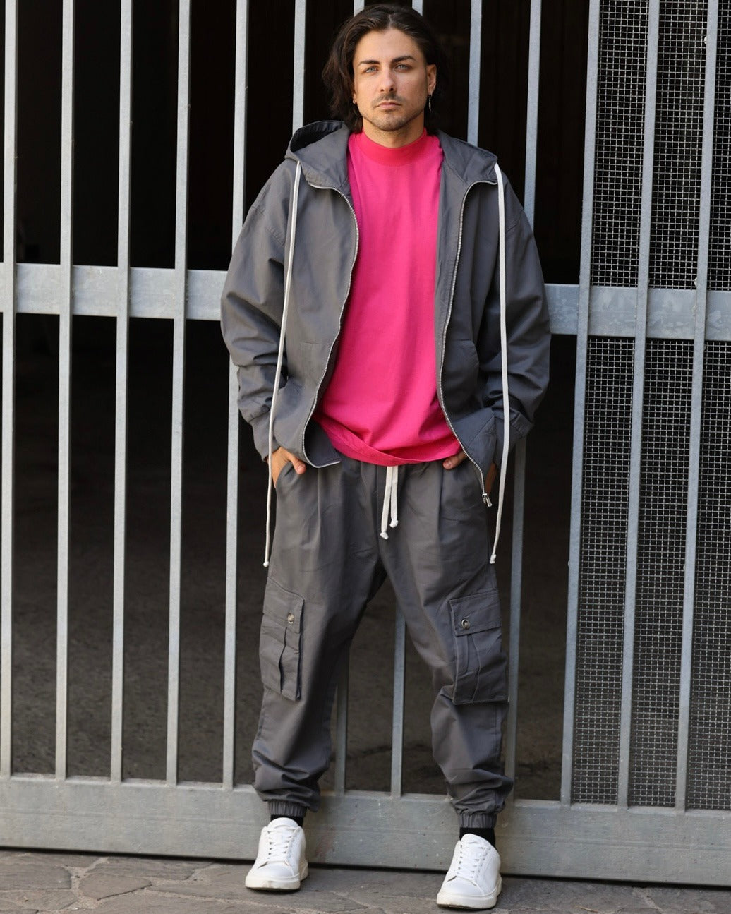 pantalone cargo in cotone tasconi laterali con chiusura bottoni elastico in vita con laccio cannolè orlo elastico "duca homme"