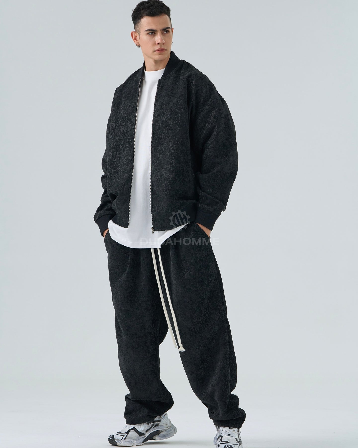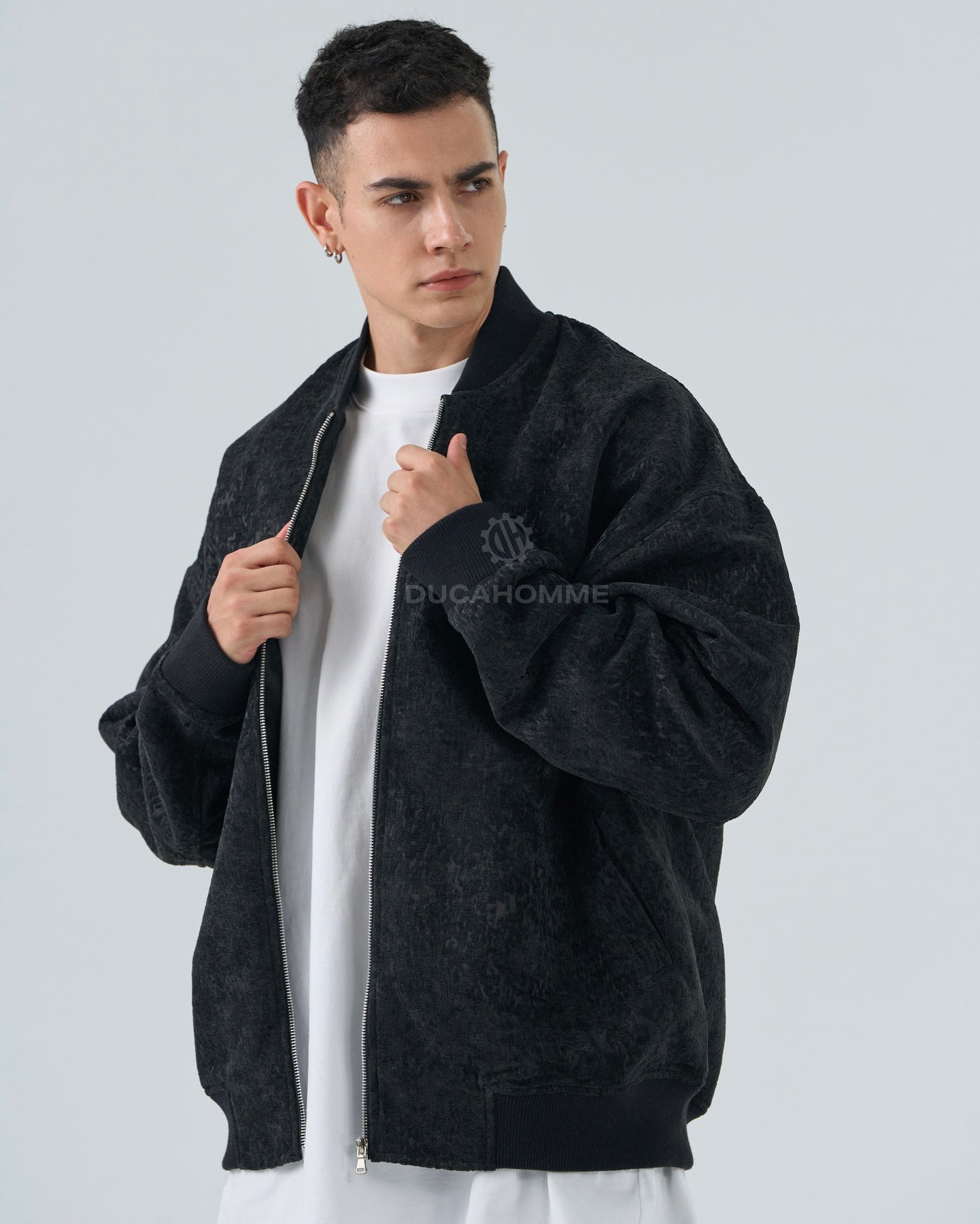 giubbino modello bomber effetto velluto lavorazione in rilievo cannolè polsini ed orlo "duca homme"