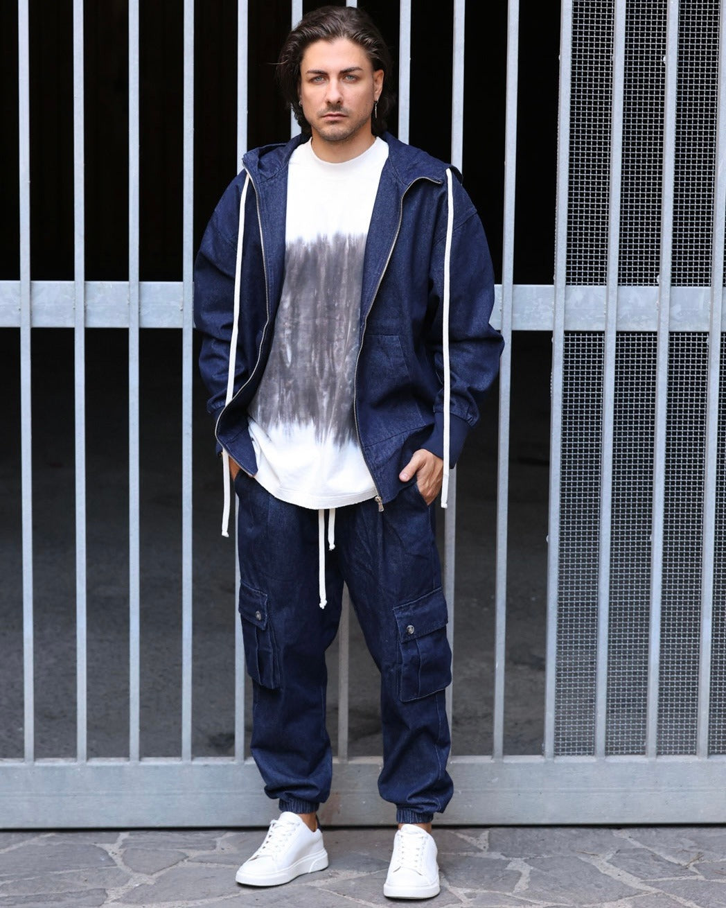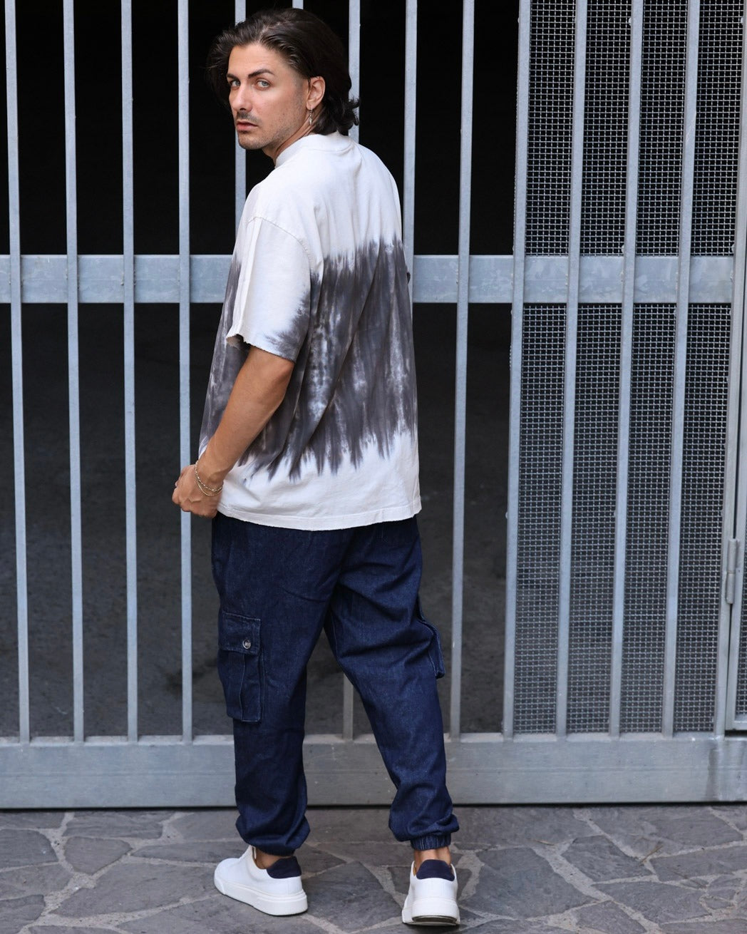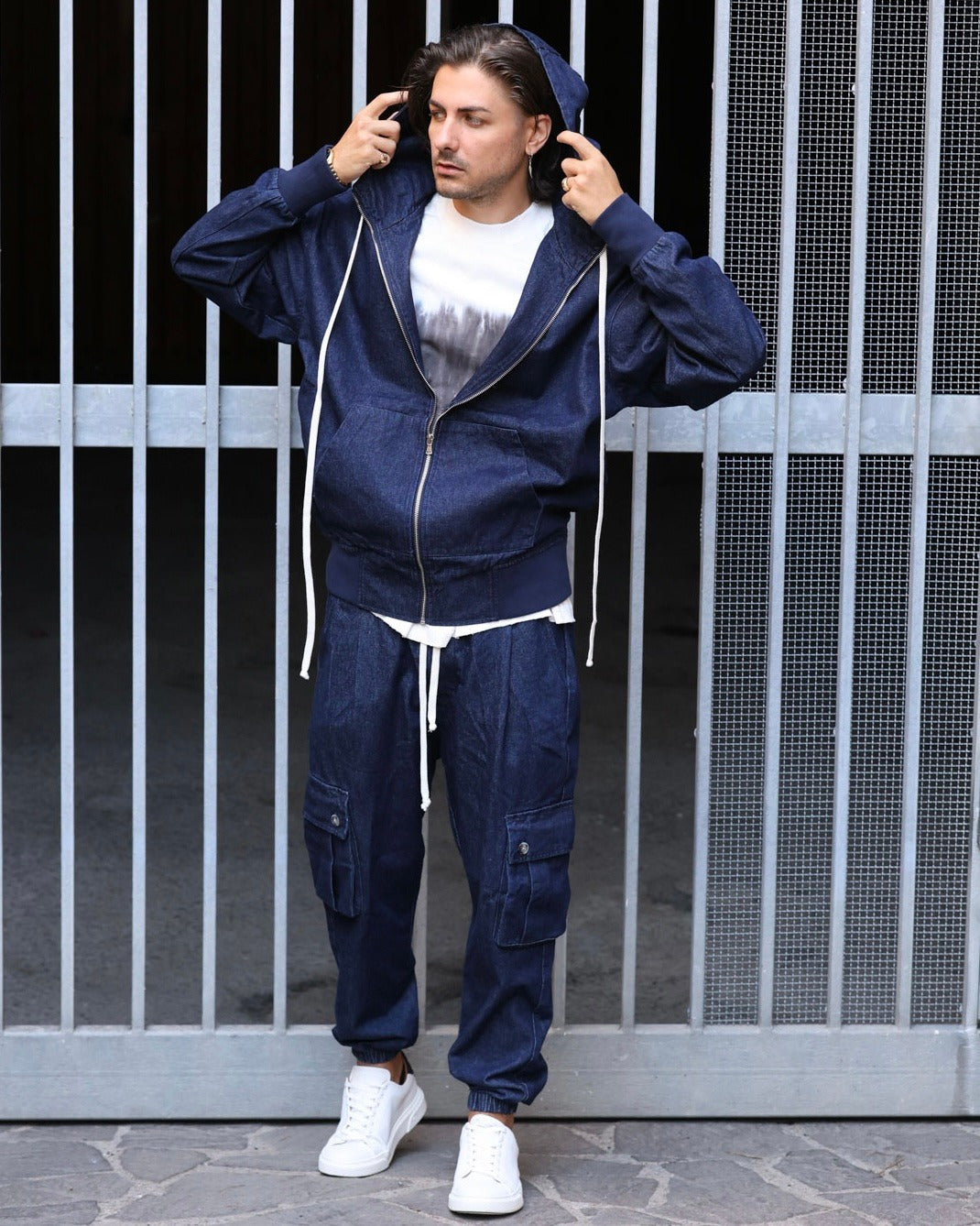 pantalone jeans cargo con laccio e polsini "duca homme"
