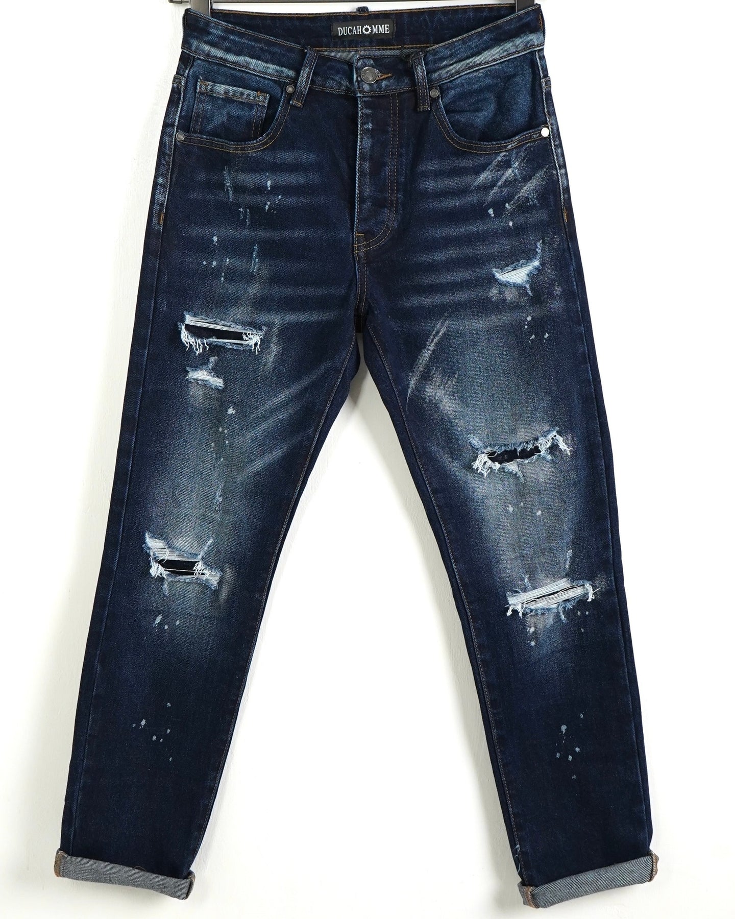 jeans lavaggio scuro sfumato con strappi e macchie effetto rovinato "duca homme"