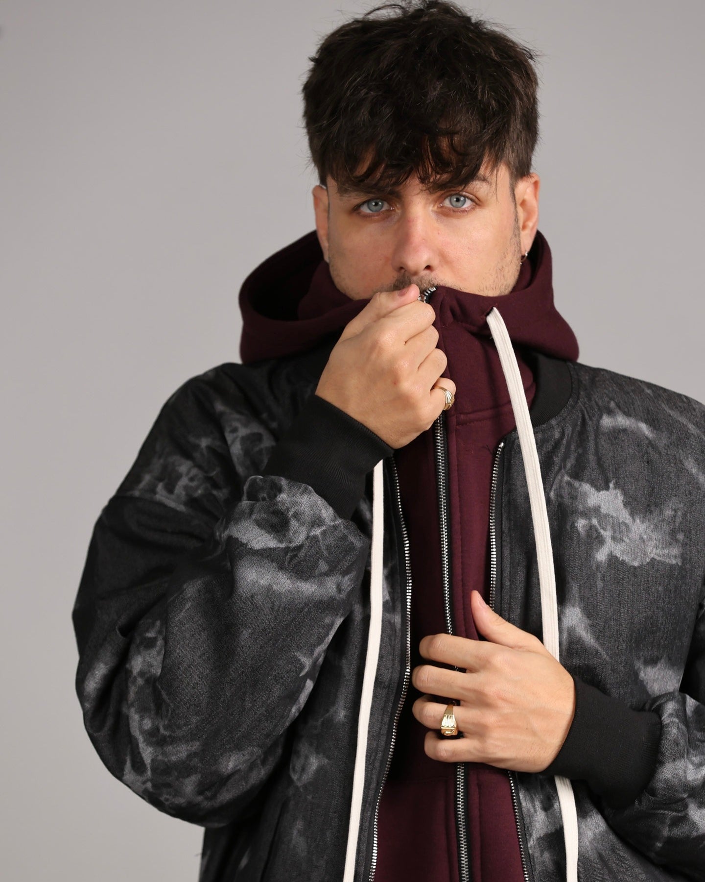 bomber in denim dettaglio sfumature chiusura cerniera cannolè polsini ed orlo