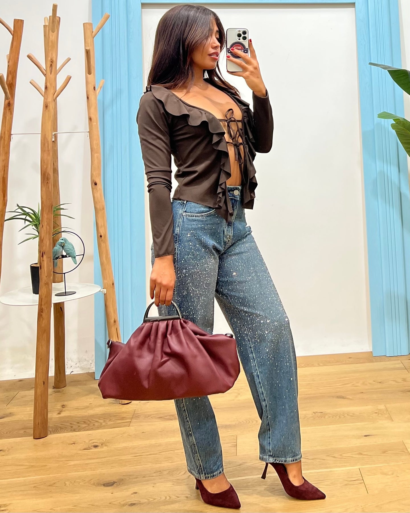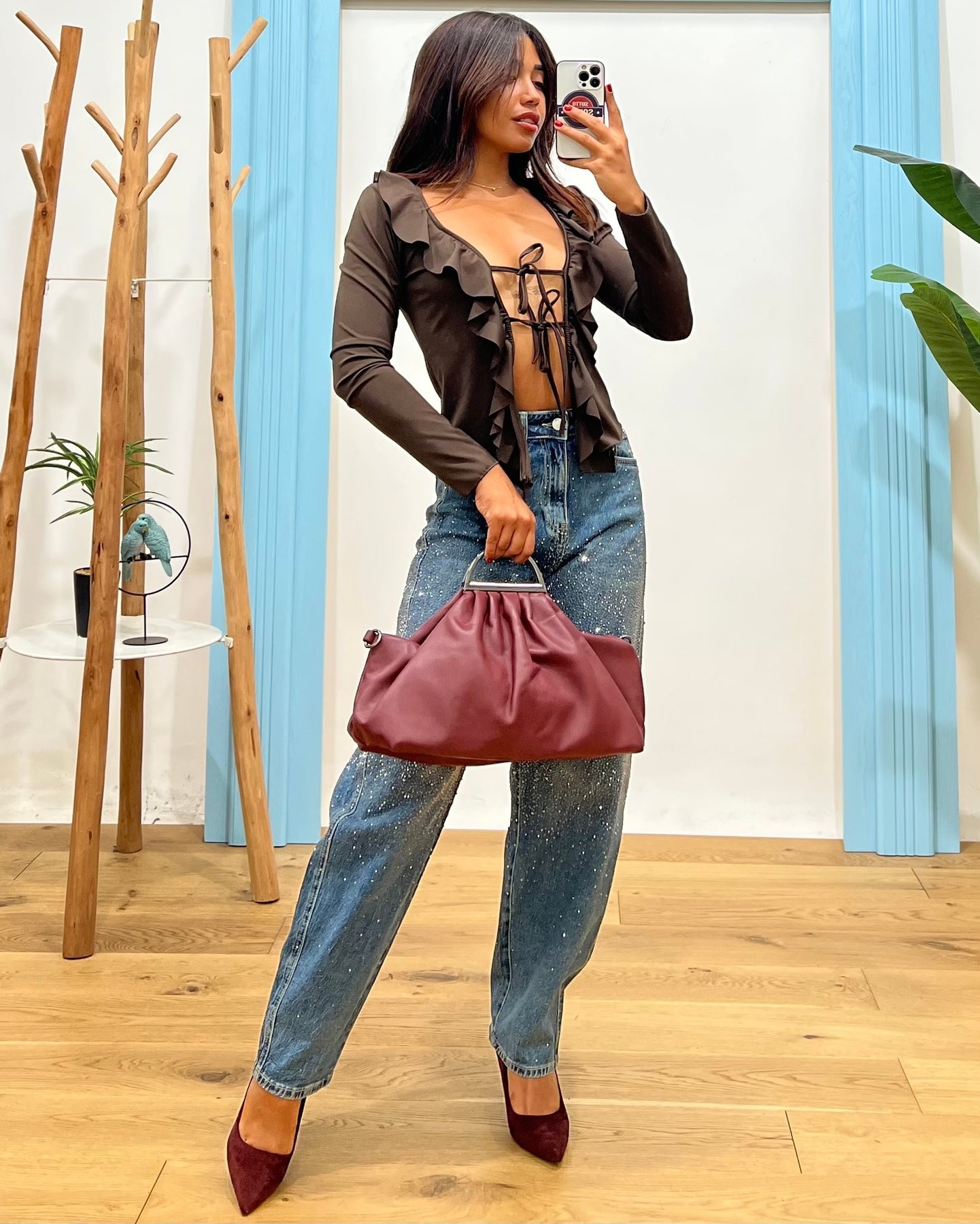 borsa in ecopelle morbida con manici rigidi e tracolla lunga inclusa