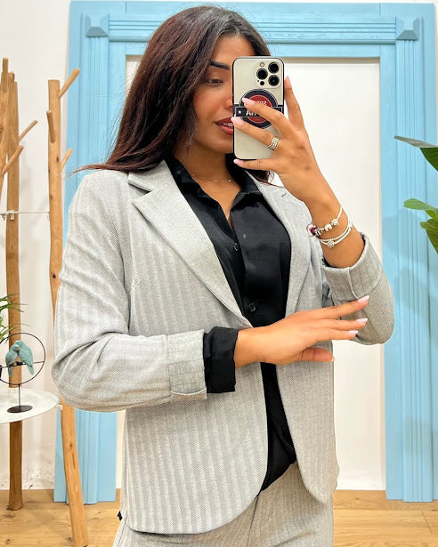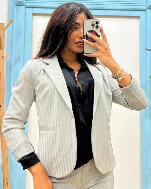 giacca in tessuto gessato collo revers, chiusura con un bottone