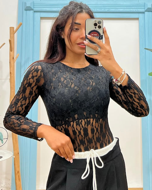 body pizzo manica lunga