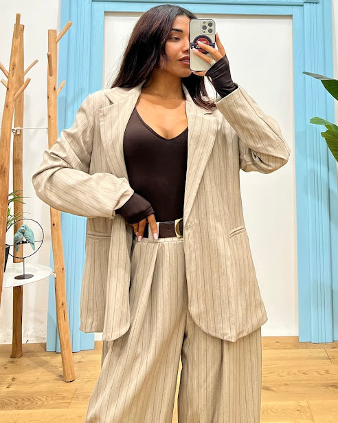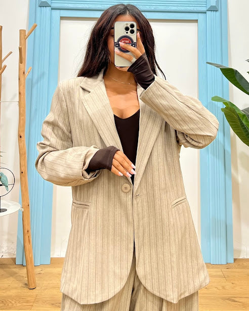 giacca over gessata collo revers chiusura bottone tasche filo anteriori