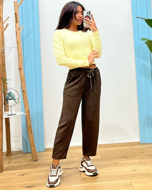 sottotuta regular con riga in rilievo elastico in vita con laccio