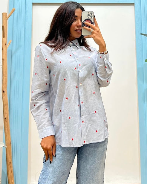 camicia a righine con cuoricini