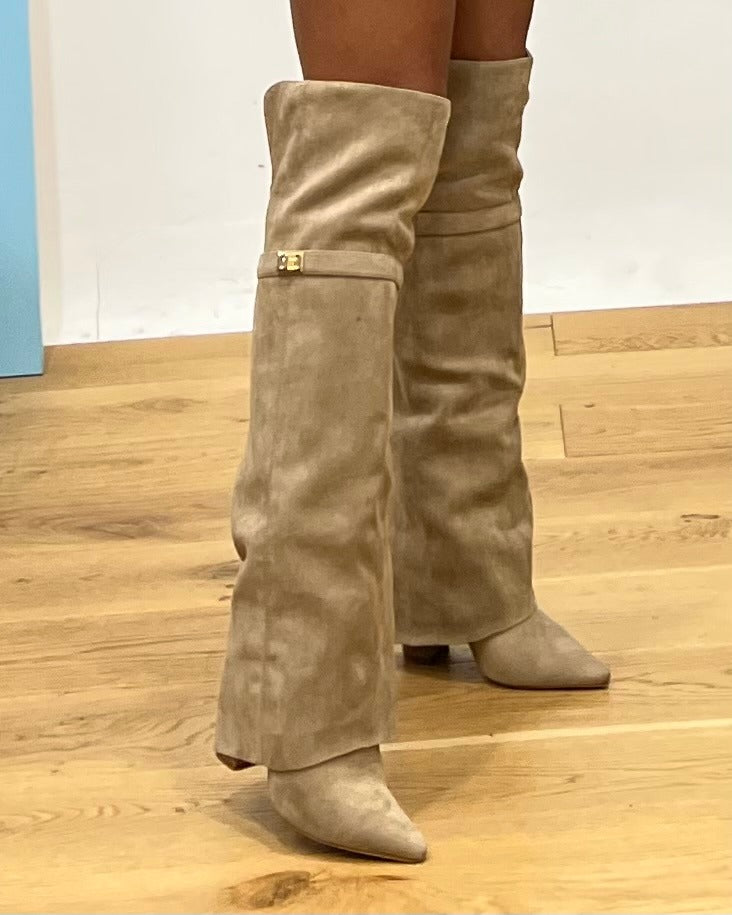 stivale gambale alto dettaglio fascetta con inserto rivetto laterale tacco largo