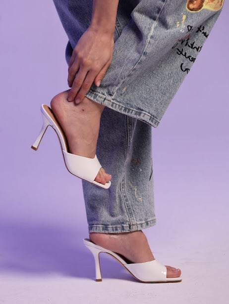 sandalo a fascia in vernice, dettaglio punta quadrata