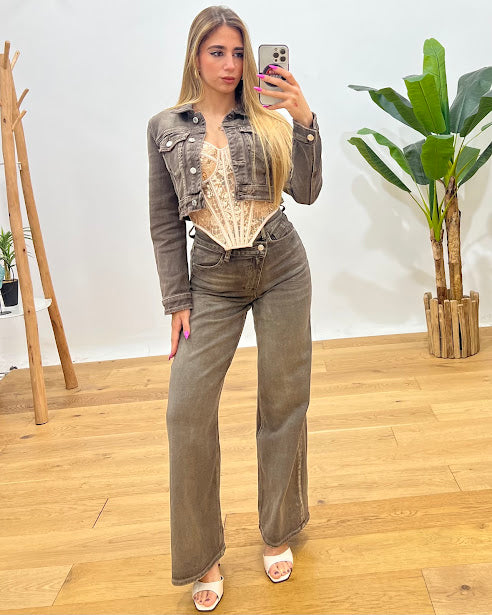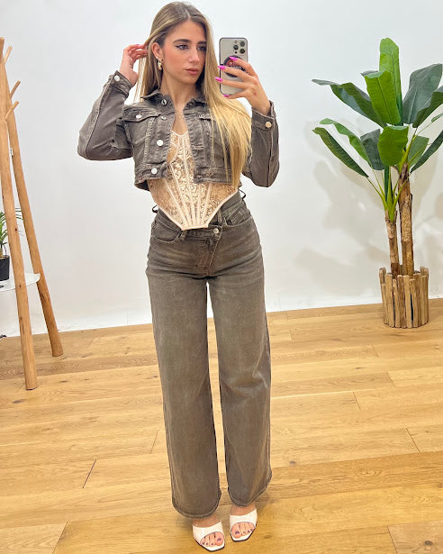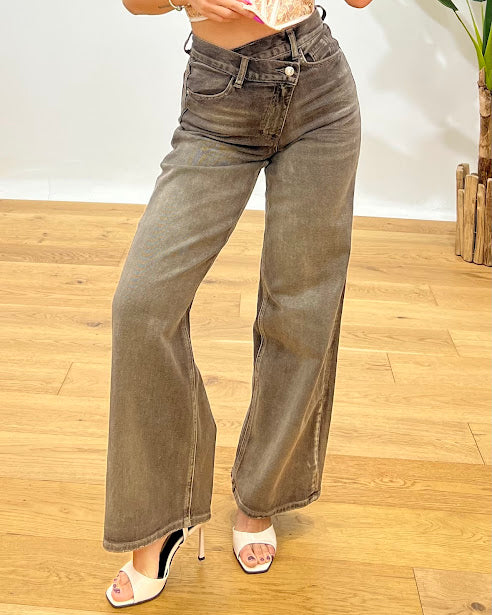 jeans lavaggio sfumato dettaglio chiusura obliqua