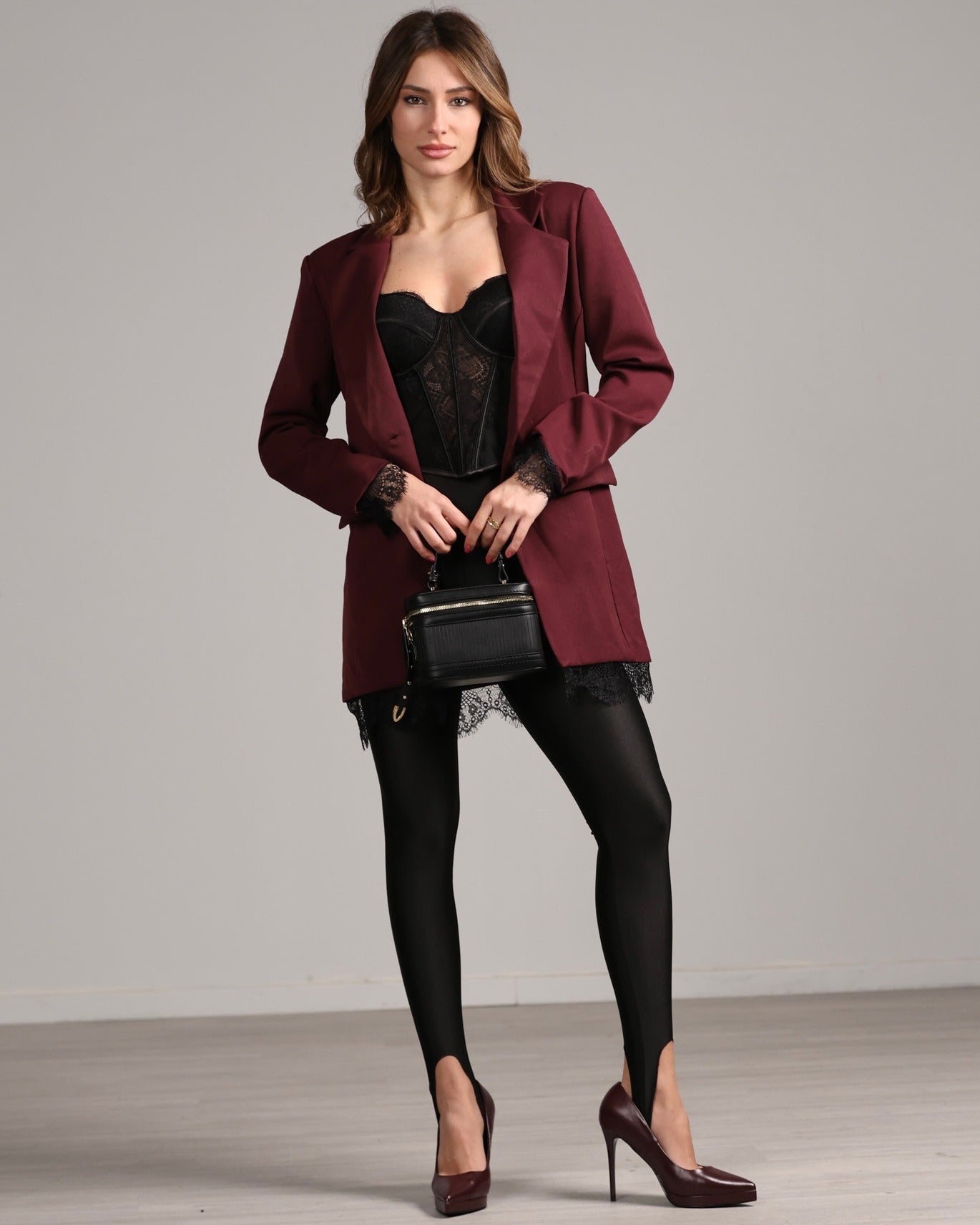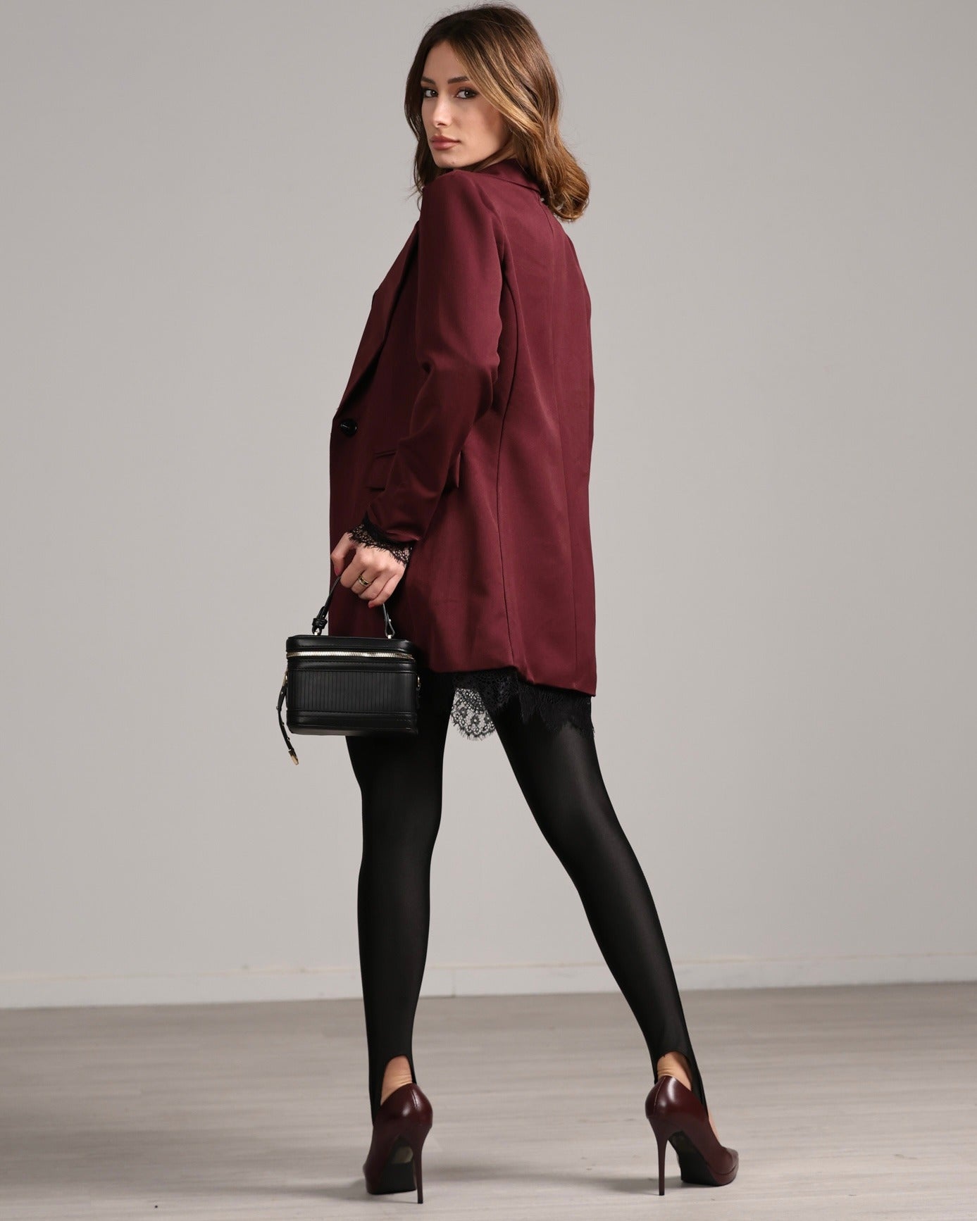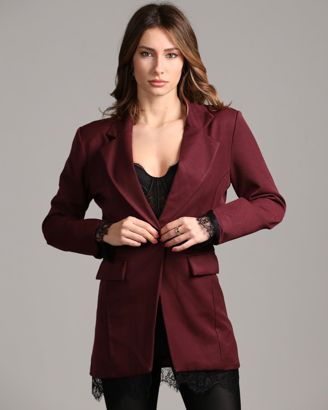 giacca classica over dettaglio inserti pizzo