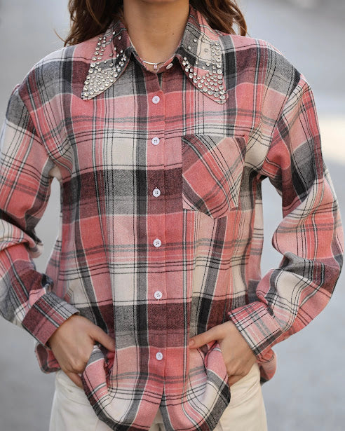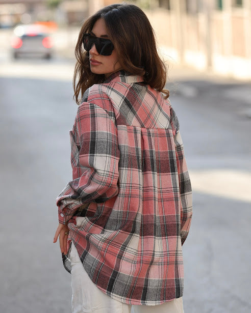 camicia a quadri oversize, dettaglio colletto gioiello