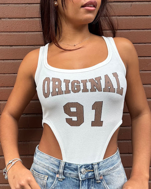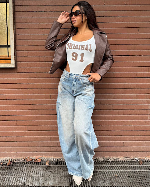 body sgambato con scritta
