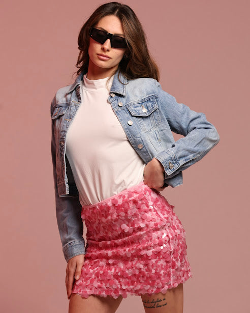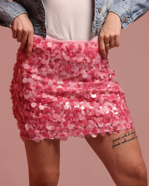 minigonna con paillettes grandi, zip laterale
